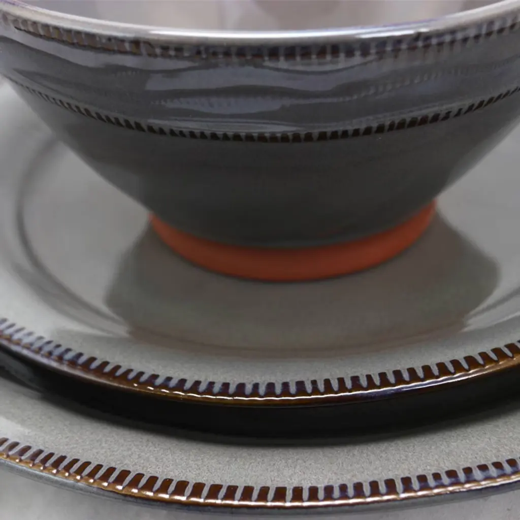Beautifully crafted, the Terranea 12-Piece Dinnerware Set will make your culinary creations look fanciful. With its elegantly crafted borders, the Terranea dinnerware set presents an artisanal character that will fill your home with warmth and dress your table in charm. Additionally, the sleek reactive glaze nicely complements the subtle gray color for added sleekness and elegance. Each piece will vary slightly. The original artistry of the reactive glaze finishing technique produces differences in color, size and texture, ensuring no two pieces are ever alike.