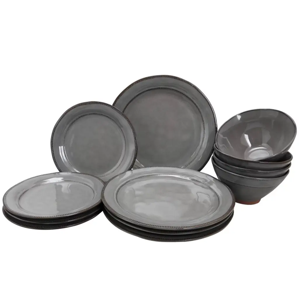 Gibson Elite 12pc Stoneware Terranea Dinnerware Set Gray