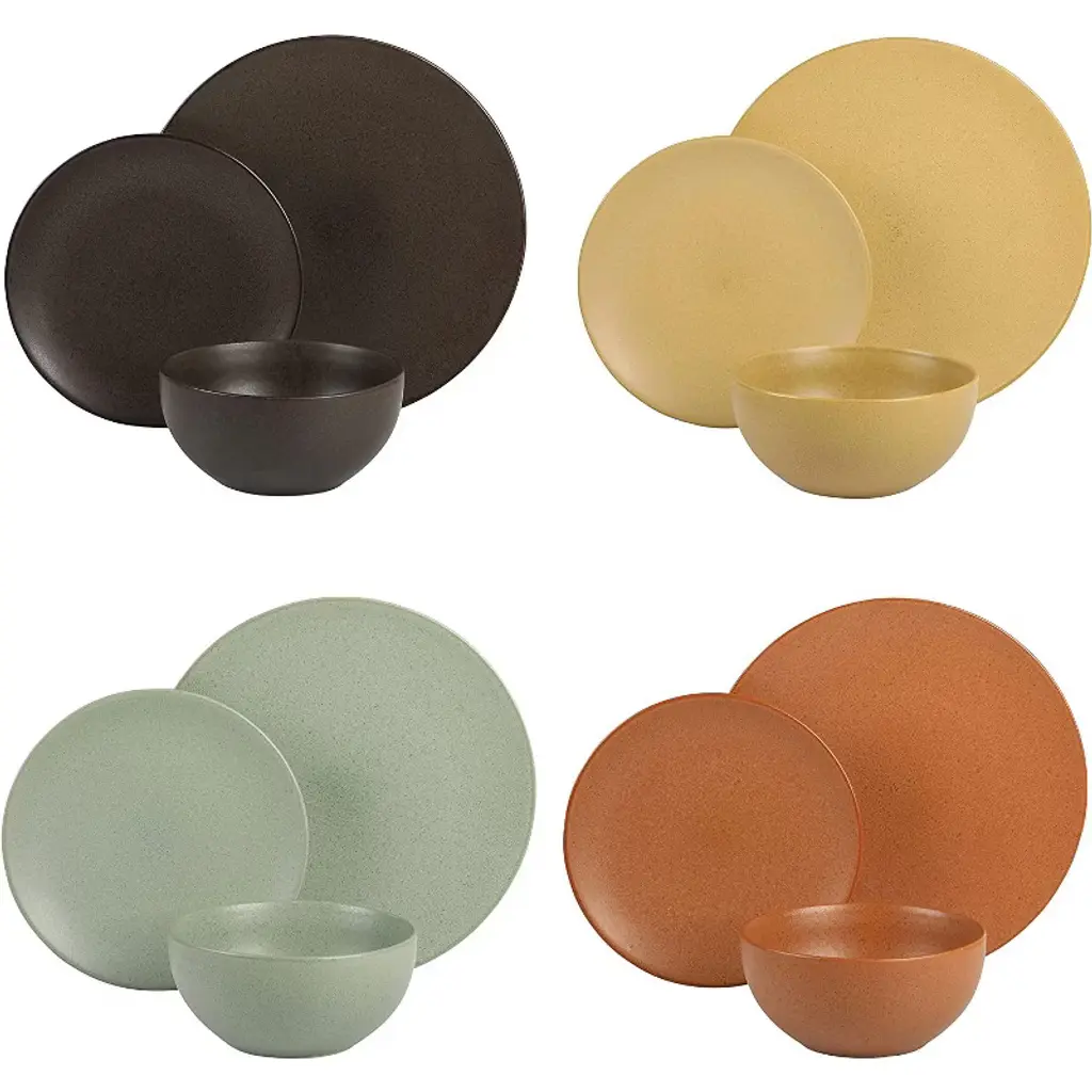 The Gibson Elite Capetown 16 Piece Assorted Color Reactive Dinnerware brings the perfect balance of convenience and elegant beauty to your dining table. Coming in service for four with a dinner plate, salad, plate, and cereal bowl, and mug, you’ll be set with all the pieces needed for any meal. You’ll also have the ability to either create a beautiful table with the assorted color, black, yellow, orange, and green, or pick which color you’d like to eat off based on your mood of the day. These plates, bowls, and mugs are the perfect centerpiece to any dining experience.The Gibson Elite Capetown 16 Piece Assorted Color Reactive Dinnerware brings the perfect balance of convenience and elegant beauty to your dining table. Coming in service for four with a dinner plate, dessert plate, and cereal bowl, you’ll be set with all the pieces needed for any meal. You’ll also have the ability to either create a beautiful table with the assorted color, black, yellow, orange, and green, or pick which color you’d like to eat off based on your mood of the day. These plates and bowls are the perfect centerpiece to any dining experience. WHAT’S IN THE BOX: Service for 4 that includes 4 of each of the following: 10.25” Dinner Plates, 8” Dessert Plates, and 6” Cereal BowlsCARE INSTRUCTIONS: beautiful dishes that are also dishwasher and microwave safeSTONEWARE/REACTIVE GLAZE: reactive refers to a technique how multiple colors within the glaze react together to create a dreamlike, vibrant quality to the colors and hues. As a result of the reactive nature of the glaze, each stoneware piece is unique. The high firing temperature, thick build, and mix of all-natural clays, makes stoneware an incredibly durable materialGIBSON ELITE: the premier brand for reactive glaze, hand-painted ceramics, and whiteware, Gibson Elite brings artisan craftsmanship to the everyday