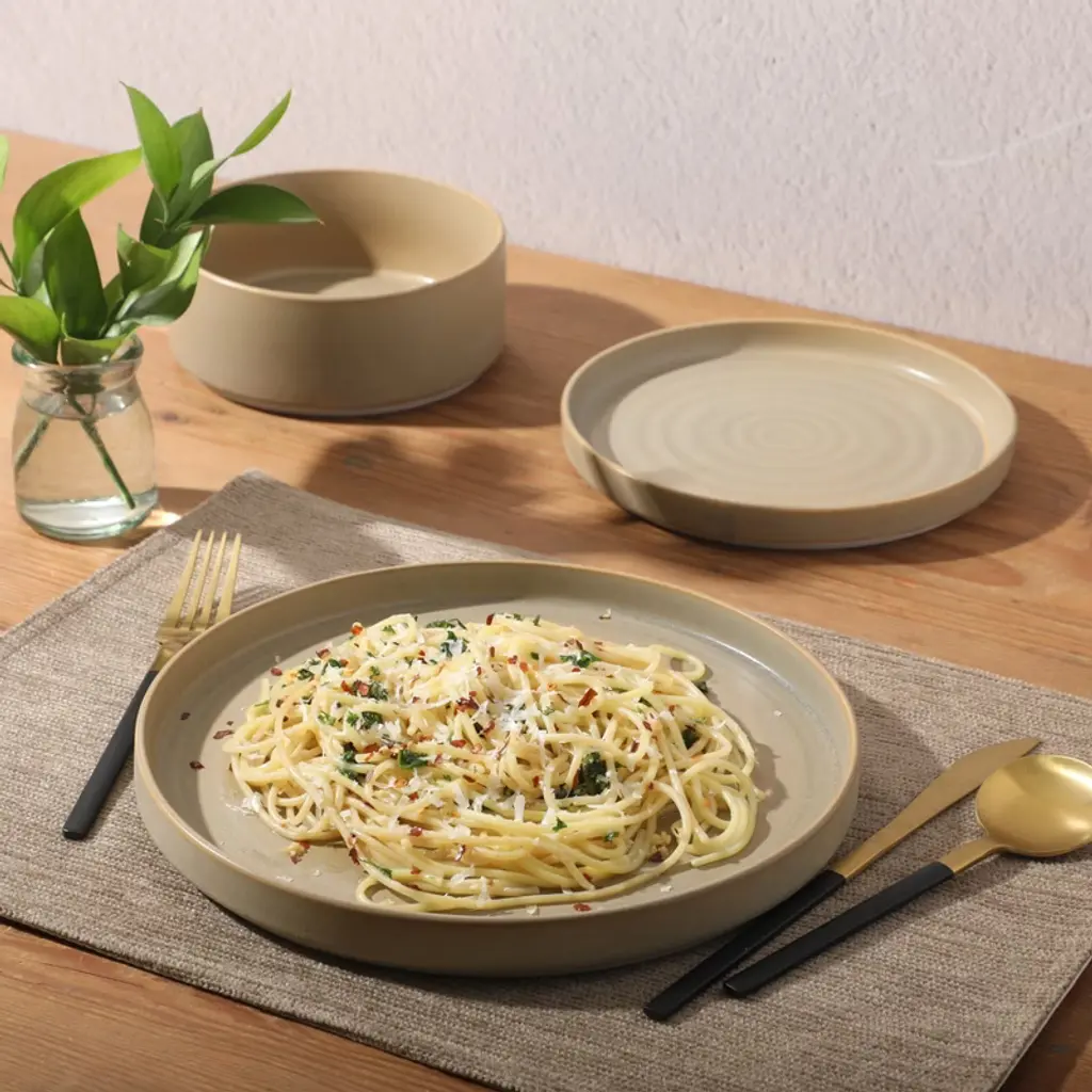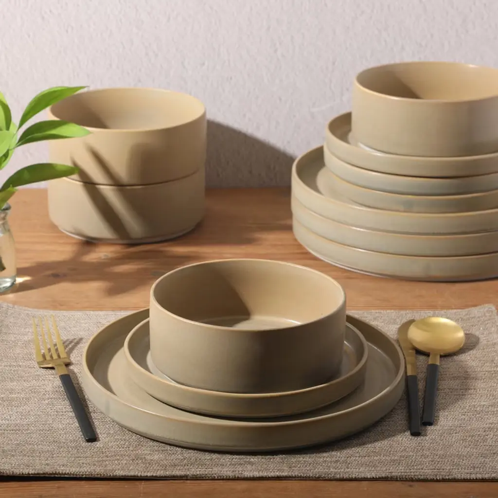 A waterfront home, a cabin nestled in the woods, or a farmhouse-style retreat in the heart of the busiest city—whatever interior style you envision for your home, it deserves pieces that inspire you to rekindle your love for entertaining. The Echo Bay Porcelain Dinnerware Collection is a set of plates and bowls that double as functional works of art, bringing beauty to every home-cooked meal. Crafted from elegant porcelain, it provides a stunning backdrop that enhances the presentation of carefully arranged recipes—designed not only to satisfy cravings but also to nourish the body. Finished with a reactive glaze, each piece showcases subtle, natural variations for added visual depth that's special and one of a kind. As a collection of stunning home staples, this dinnerware set makes a tasteful gift for any occasion. Loved for both its practical use and decorative appeal, it expresses your impeccable taste and well wishes to family, friends, new homeowners, and newlyweds. Dishwasher and microwave safe. Quintessentially sophisticated and thoughtfully versatile, Gibson Elite offers a tasteful blend of form and function brought to a myriad of dinnerware, serving ware, and tabletop accessories. Quality in material selection and stylish aesthetics in designs and glazing techniques provide endless possibilities for creative tablescapes and dining occasions. A waterfront home, a cabin nestled in the woods, or a farmhouse-style retreat in the heart of the busiest city—whatever interior style you envision for your home, it deserves pieces that inspire you to rekindle your love for entertaining. The Echo Bay Porcelain Dinnerware Collection is a set of plates and bowls that double as functional works of art, bringing beauty to every home-cooked meal. Crafted from elegant porcelain, it provides a stunning backdrop that enhances the presentation of carefully arranged recipes—designed not only to satisfy cravings but also to nourish the body. Finished with a reactive glaze, each piece showcases subtle, natural variations for added visual depth that's special and one of a kind. As a collection of stunning home staples, this dinnerware set makes a tasteful gift for any occasion. Loved for both its practical use and decorative appeal, it expresses your impeccable taste and well wishes to family, friends, new homeowners, and newlyweds. Dishwasher and microwave safe.Quintessentially sophisticated and thoughtfully versatile, Gibson Elite offers a tasteful blend of form and function brought to a myriad of dinnerware, serving ware, and tabletop accessories. Quality in material selection and stylish aesthetics in designs and glazing techniques provide endless possibilities for creative tablescapes and dining occasions.FOUR PLACE SETTINGS: This complete set includes four 10-inch dinner plates, four 7.5-inch dessert plates and four 6-inch cereal bowls. Suitable for a service for four and a spread filled with homemade meals and authentic conversations.EXPERTLY CRAFTED: Gibson Elite is part of a renowned family of legacy brands with over 40 years of expertise in enhancing home dining and entertaining. Porcelain plates and bowls pair well with any kitchen decor or theme of your table setting. The chip-resistant construction offers dependability to serve delicious meals every day, every season. ART ON THE TABLE: Each plate and bowl showcases the perfect balance of artistry and technique. A glossy reactive glaze creates intentional flecks to enhance the depth of color and texture. With natural variations in design, every piece has its own unique character, making each one truly one of a kind. GIFTING WITH STYLE: Add this collection to your gift registry or gift it to family, friends, newlyweds and first-time homeowners to celebrate birthdays, weddings, special occasions or everyday milestones. CARE INSTRUCTIONS: Dishwasher and microwave safe