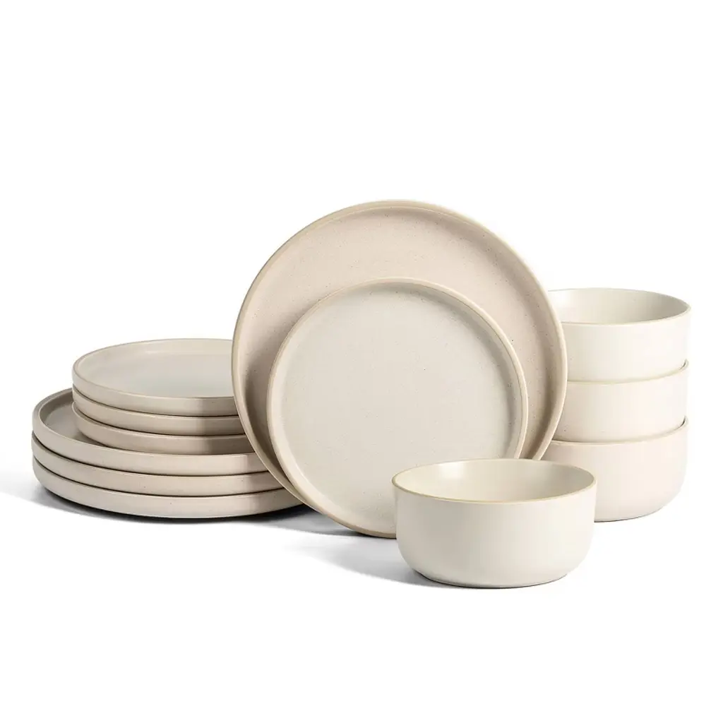 Gibson Elite Island Cove 16 Piece (Service For 4) Plates And Bowls Reactive Glaze Organic Round Dishes Stoneware Ceramic Dinnerware Set