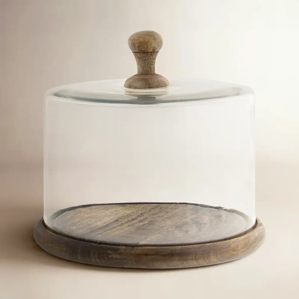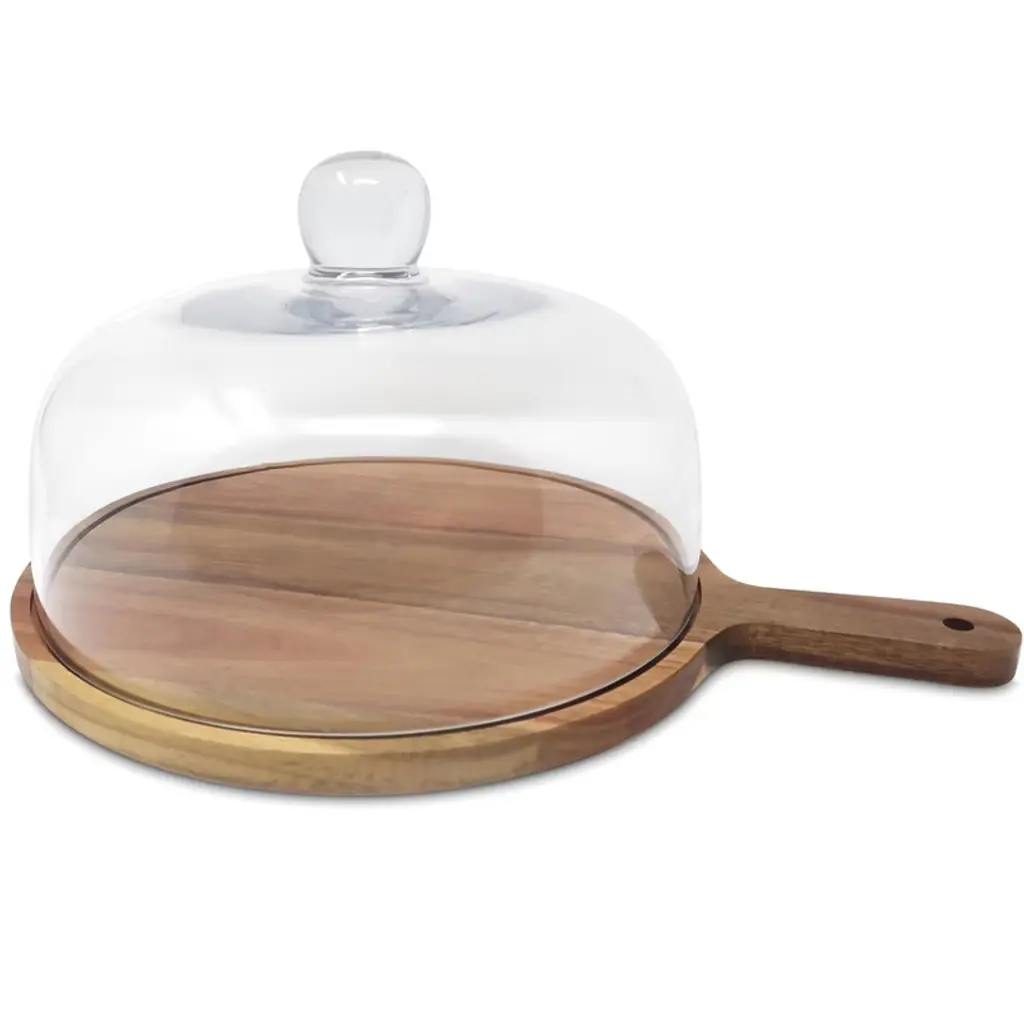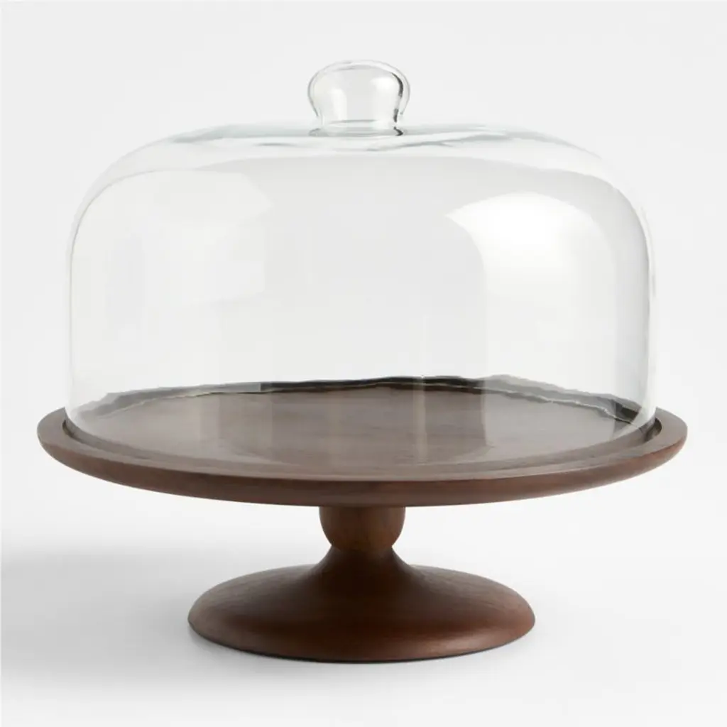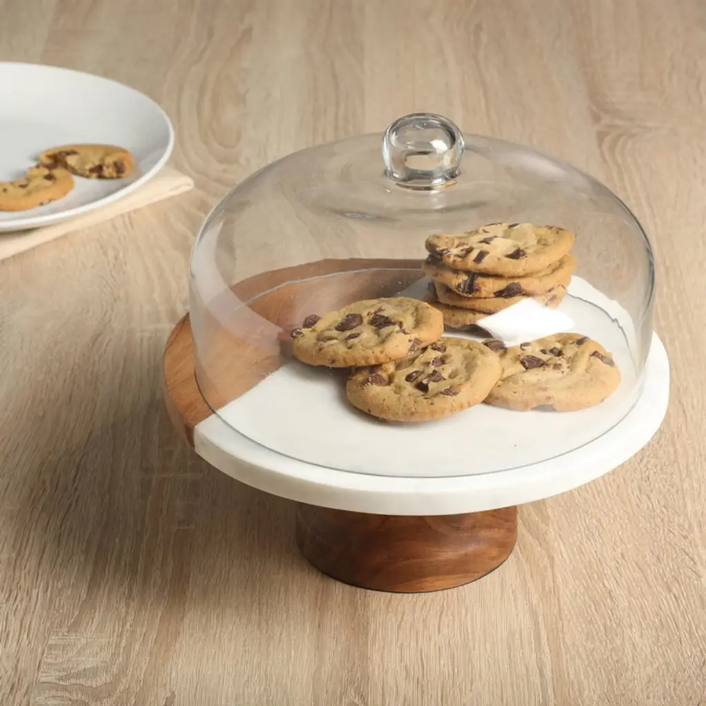 Gibson Elite Ridgehaven 10" Marble & Wood Cake Stand, Serving Platter, Charcuterie Board, And Center Piece Home Décor With Glass Lid