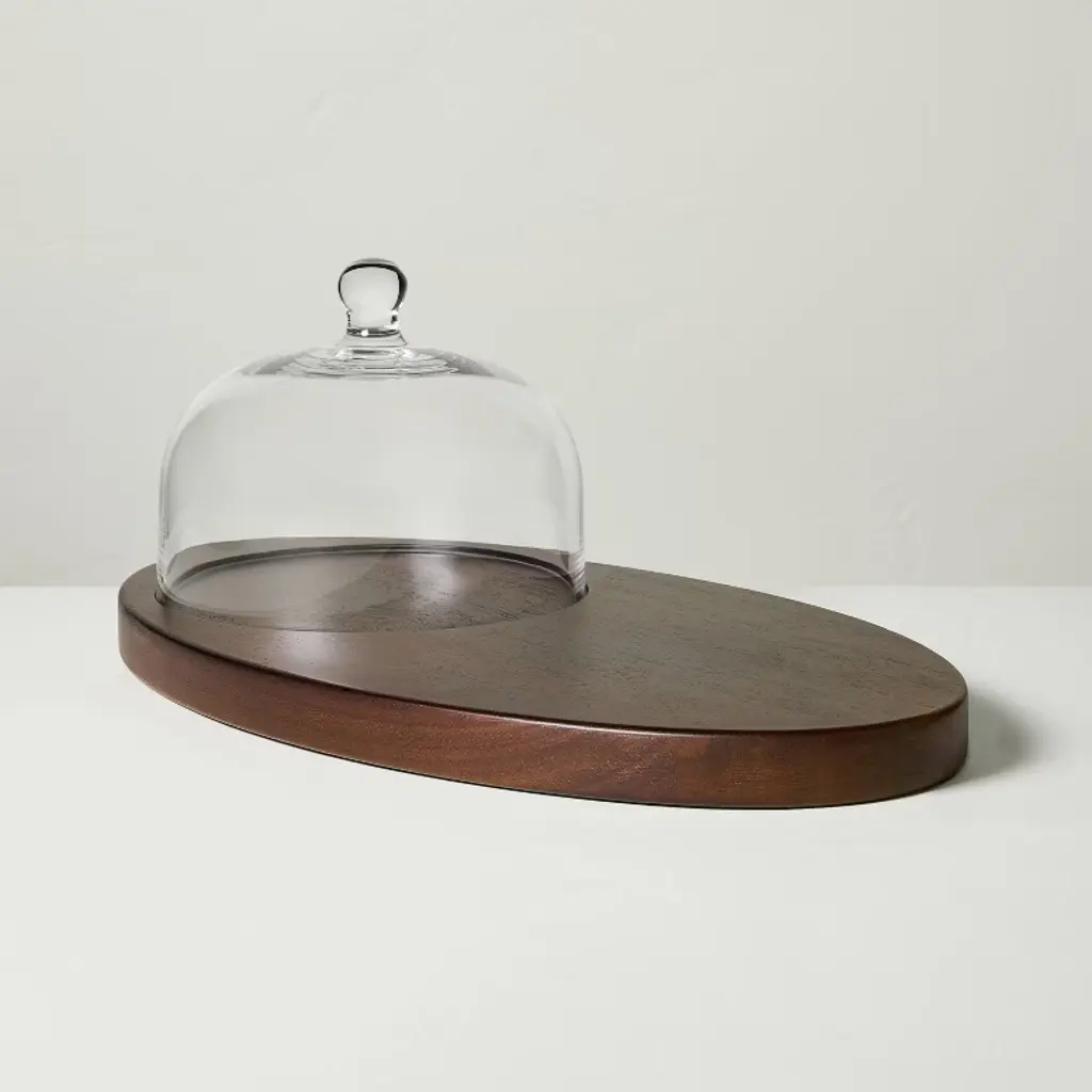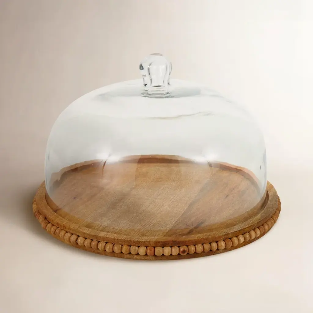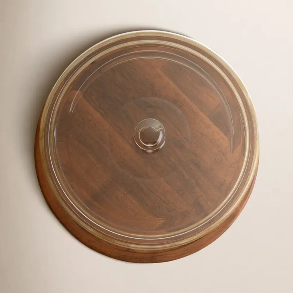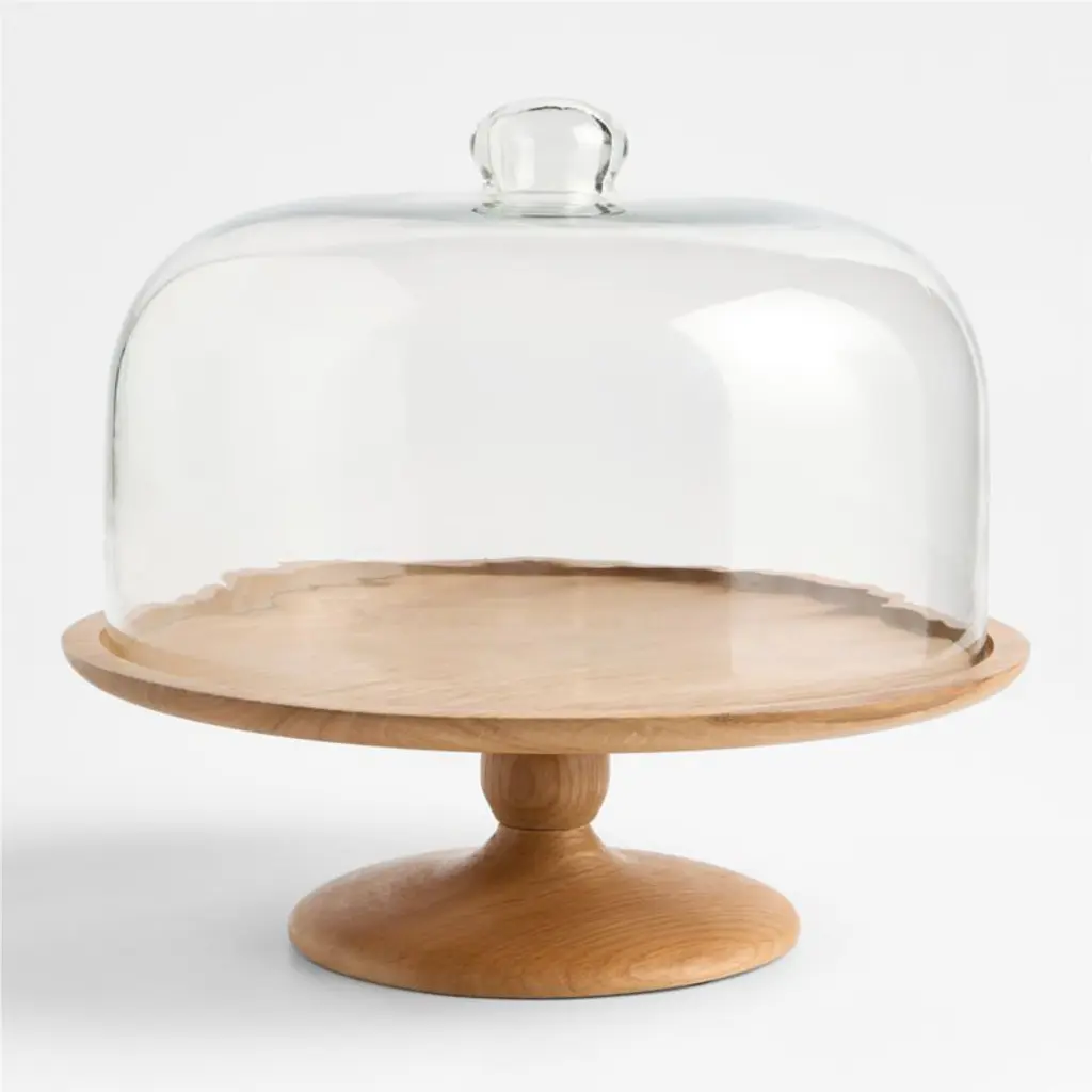 Gibson Elite Ridgehaven 10" Marble & Wood Cake Stand, Serving Platter, Charcuterie Board, And Center Piece Home Décor With Glass Lid