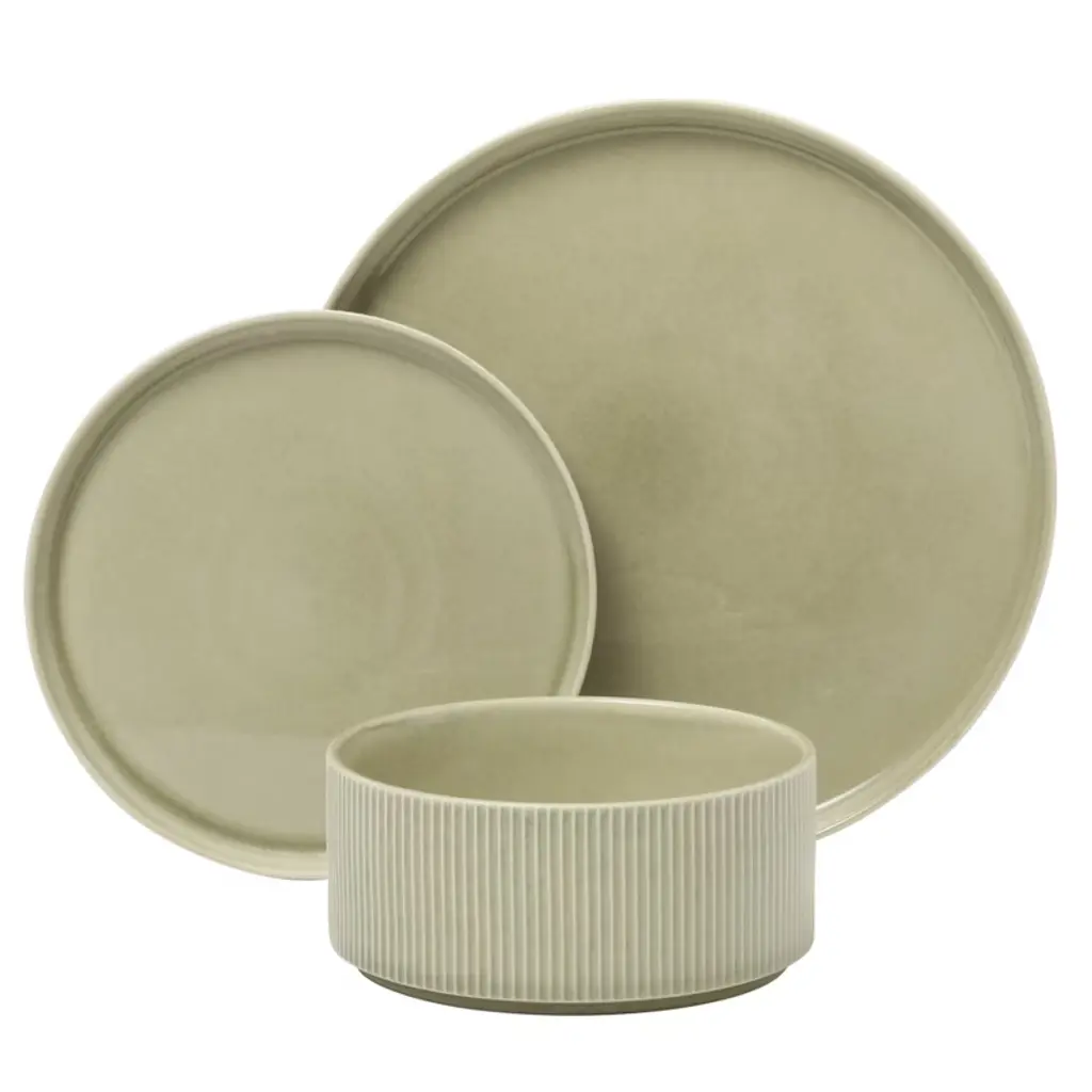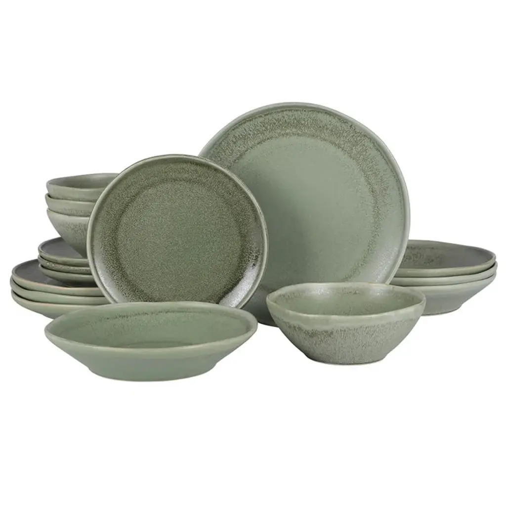 Gibson Elite Solana Coast 12 Piece Stoneware Reactive Glaze (Service For 4) Ceramic Plates And Bowls Modern Shape Embossed Dinnerware Set - Green