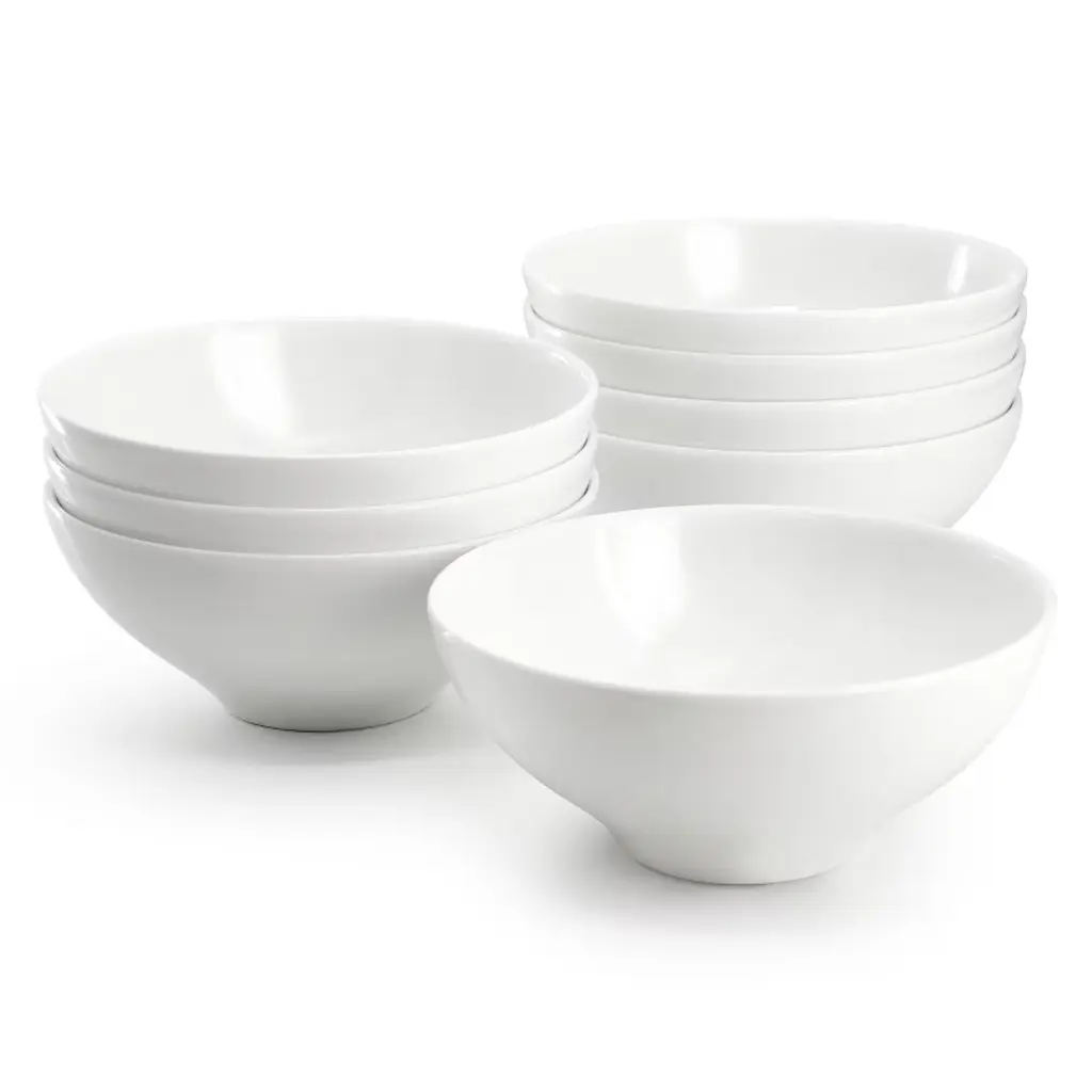 Upgrade your dining experience with the Gibson Elite White Peninsula 8-Piece 6.5 Inch Bone China Cereal Bowl Set. Crafted from premium bone china, these bowls offer a perfect blend of elegance and durability, making them ideal for both everyday meals and special occasions. The classic white color adds a timeless, versatile touch to any table setting, while the glossy finish enhances their sophisticated appearance. Designed with a lightweight fine China construction, these bowls are easy to handle yet strong enough to withstand daily use. Each bowl features a generous 22oz capacity, making them perfect for cereals, soups, salads, and more. For added convenience, these bowls are both dishwasher safe and microwave safe, ensuring effortless cleaning and quick reheating of your meals. The stackable design allows for easy storage, while the subtle footed base ensures stability and prevents slipping. This set includes eight cereal bowls, making it an ideal choice for families or entertaining guests. Whether you're enjoying a quick breakfast or hosting a dinner gathering, the Gibson Elite White Peninsula Bone China Cereal Bowl Set combines style, practicality, and durability, making it a must-have addition to your kitchen.