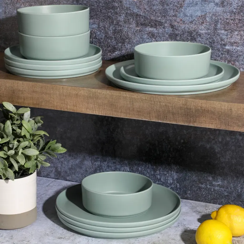 Gibson Home Canyon Crest 12-Piece Stackable Matte Melamine Dinnerware Set