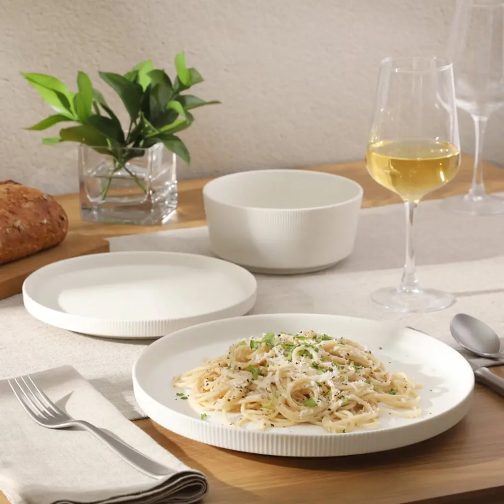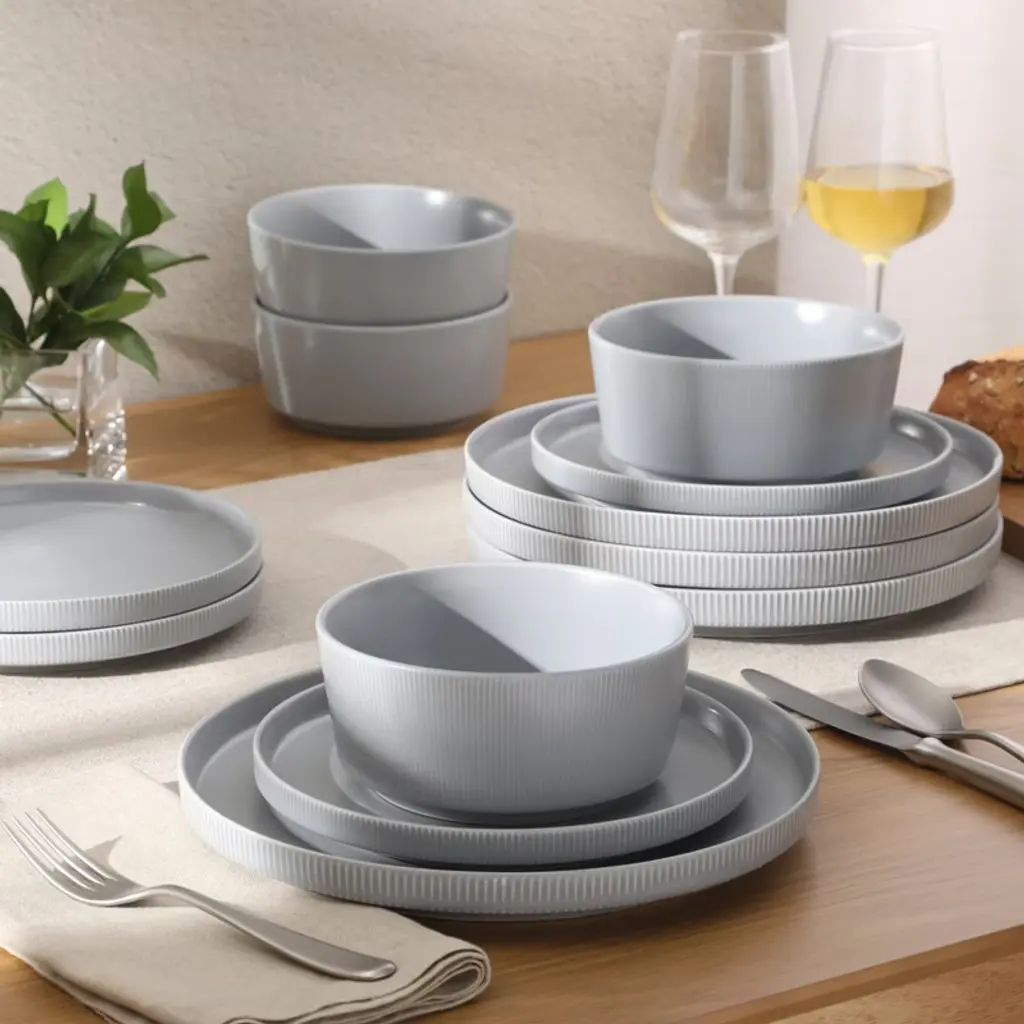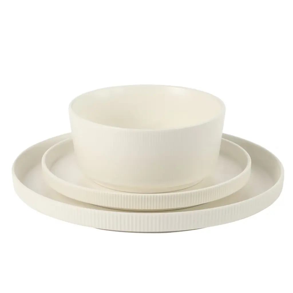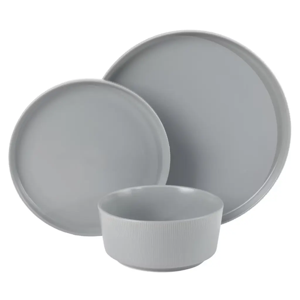 "Embrace today’s plating trends with modern dinnerware designed to inspire creativity at every meal. The Dempsey Road Dinnerware Set by Gibson Home features contemporary, restaurant-style silhouettes that are both stylish and functional. These flat, recognizable shapes offer a spacious surface that enhances the presentation of every dish. A soft matte finish and subtle ribbed detailing add just the right amount of texture and elegance. The result is a refined yet approachable collection that brings a professional, well-composed look to any tablescape. Share the joy of entertaining with family and friends by gifting them this timeless dinnerware collection for weddings, housewarmings, birthdays, holidays, and more. Dishwasher and microwave safe. Make every home a Gibson Home. A multi-category collection of kitchen and dining essentials, Gibson Home offers style and value for everyday living. Enjoy preparing, cooking, and serving delicious meals in a wide selection of dinnerware, cookware, bakeware, cutlery, glassware, and more. Designed with function, reliability, and versatility, Gibson Home provides dining and entertaining staple to make every mealtime or gathering a culinary success." Embrace today’s plating trends with modern dinnerware designed to inspire creativity at every meal. The Dempsey Road Dinnerware Set by Gibson Home features contemporary, restaurant-style silhouettes that are both stylish and functional. These flat, recognizable shapes offer a spacious surface that enhances the presentation of every dish. A soft matte finish and subtle ribbed detailing add just the right amount of texture and elegance. The result is a refined yet approachable collection that brings a professional, well-composed look to any tablescape.Share the joy of entertaining with family and friends by gifting them this timeless dinnerware collection for weddings, housewarmings, birthdays, holidays, and more. Dishwasher and microwave safe. Make every home a Gibson Home. A multi-category collection of kitchen and dining essentials, Gibson Home offers style and value for everyday living. Enjoy preparing, cooking, and serving delicious meals in a wide selection of dinnerware, cookware, bakeware, cutlery, glassware, and more. Designed with function, reliability, and versatility, Gibson Home provides dining and entertaining staple to make every mealtime or gathering a culinary success. FOUR PLACE SETTINGS: This complete dinnerware set includes four 10.5-inch dinner plates, four 8-inch dessert plates and four 6-inch cereal bowls. Suitable for a service for four to serve small breakfasts, quick lunches or gourmet dinners all year round.EASY-TO-CLEAN DINNERWARE: Made from durable stoneware, these plates and bowls are elevated dining essentials that are best in versatility and effortless cleanup. Fired at high temperature for a wear-resistant and non-porous construction, these heavy stoneware pieces provide a sturdy look and feel for everyday use.MODERN SILHOUETTES: Flat construction framed by subtle, raised trims offers both stackable storage and a sleek stage for a more inspired plating style. The matte finish adds a refined touch to relaxed meals and casual gatherings.GIFTING WITH STYLE: Add this collection to your gift registry or gift it to family, friends, newlyweds and first-time homeowners to celebrate birthdays, weddings, special occasions or everyday milestones.CARE INSTRUCTIONS: Dishwasher and microwave safe