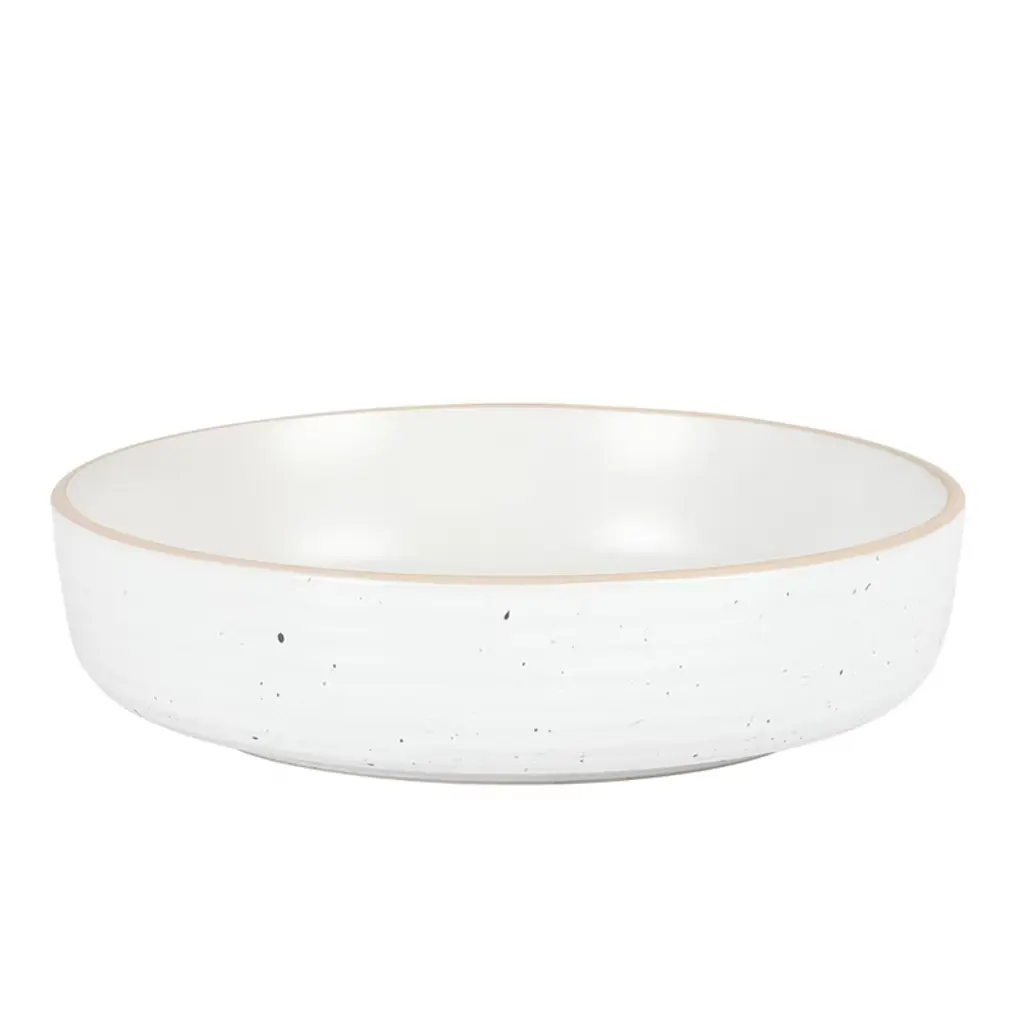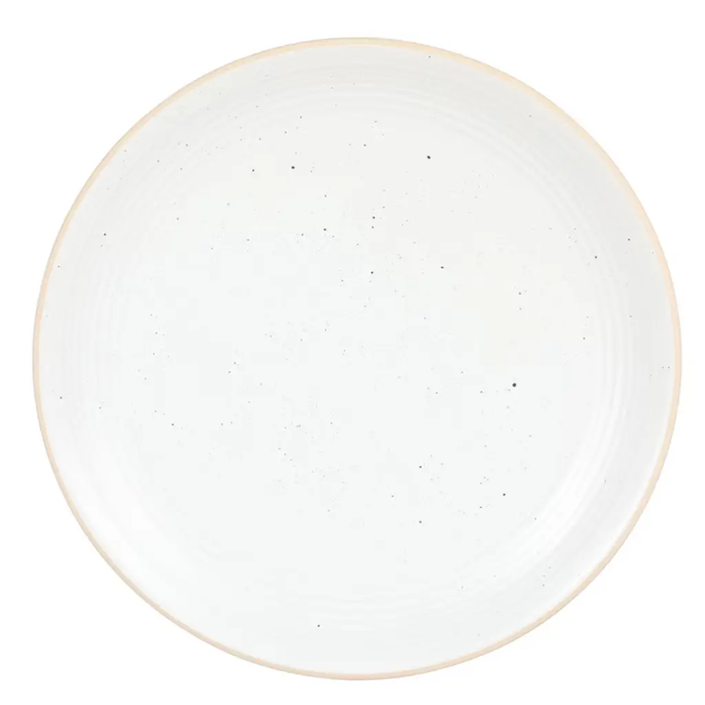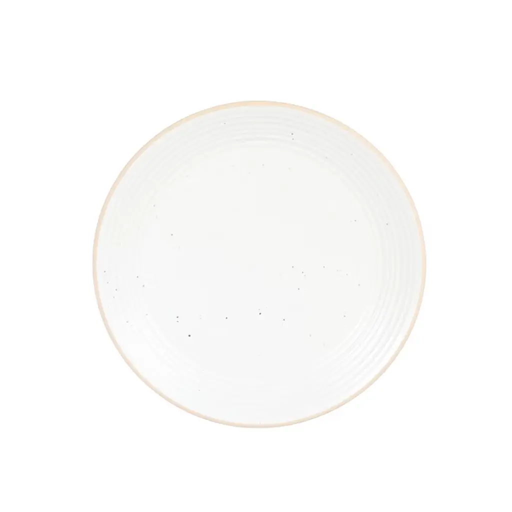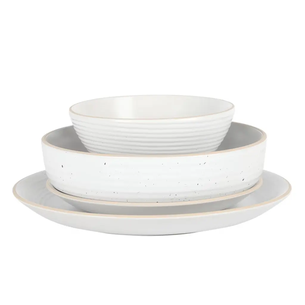 Gibson Home Dinah 16pc Double Bowl Stoneware Embossed Speckled Dinnerware Set Matte White: Classic Dining Ware Set