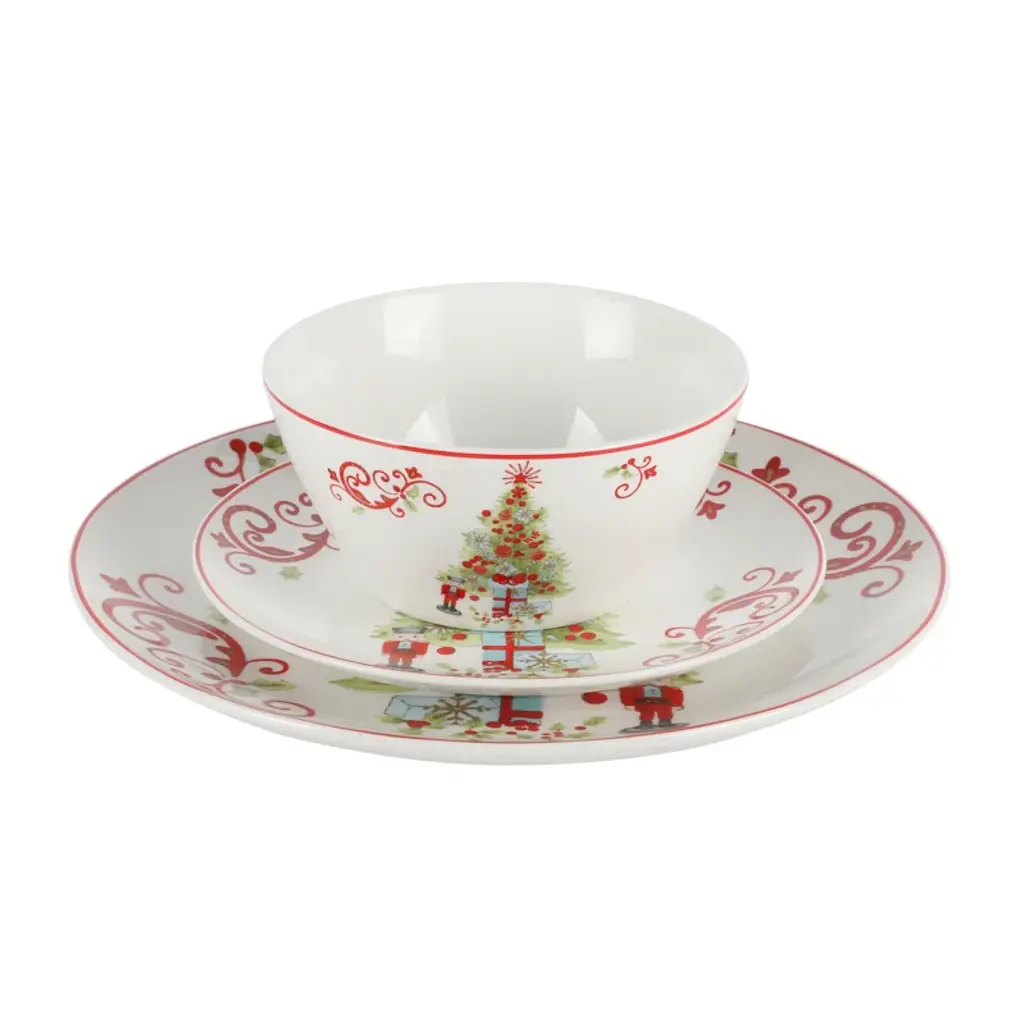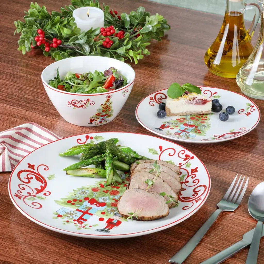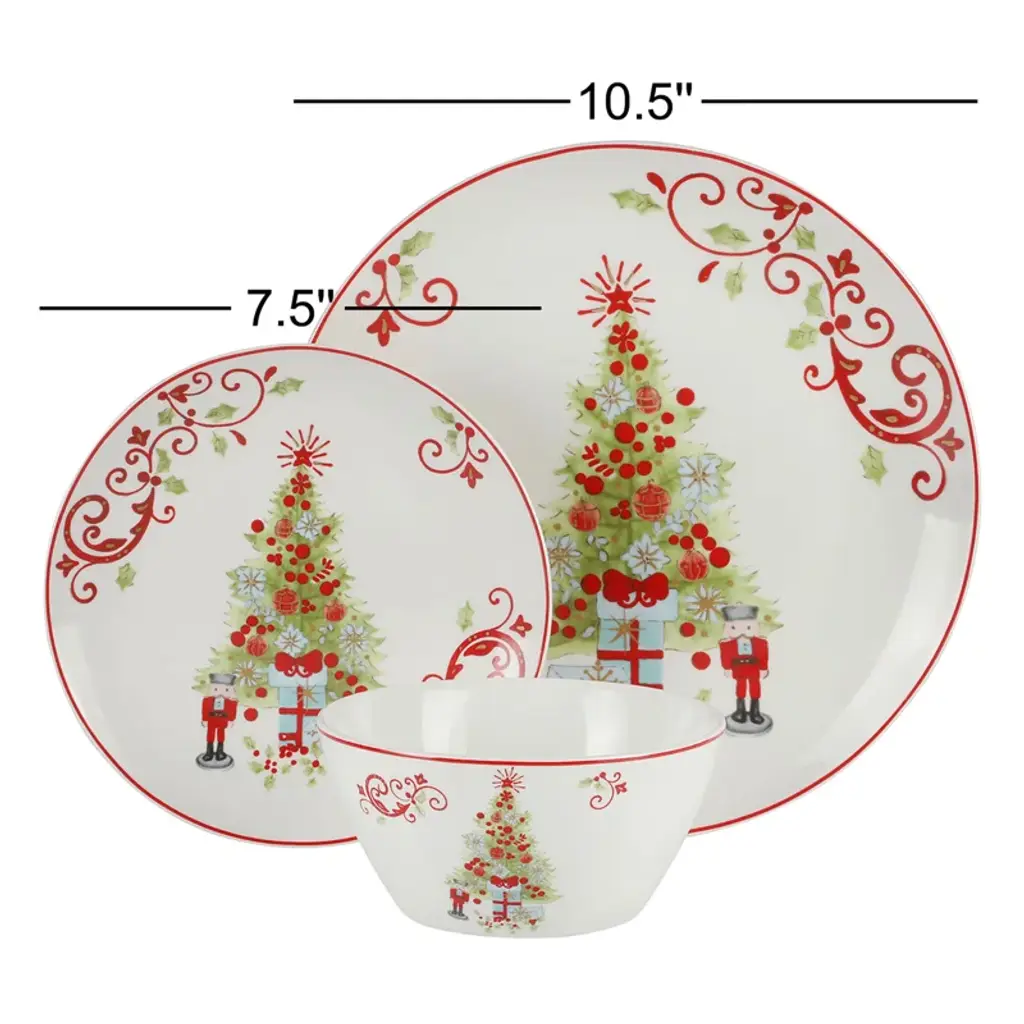 Gibson Home Festive Tree 12 Piece Porcelain Dinnerware Set