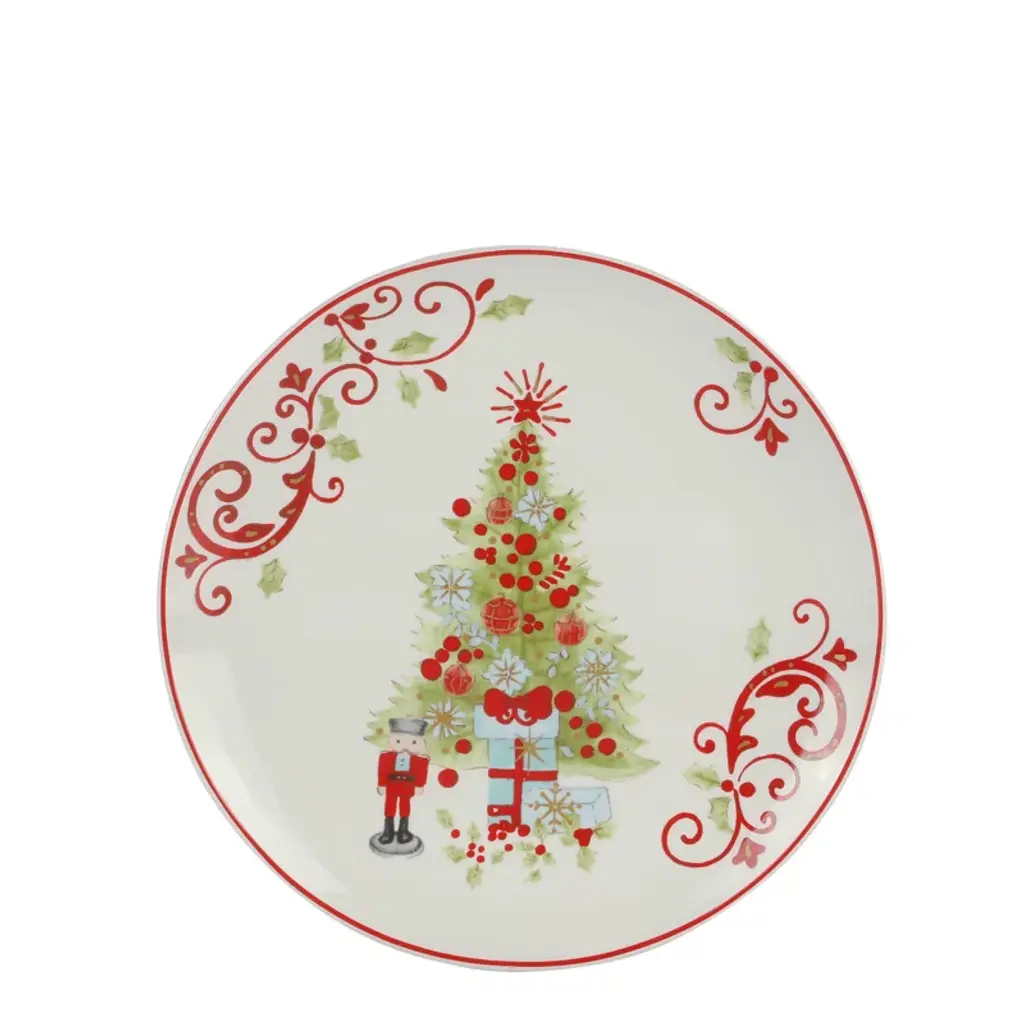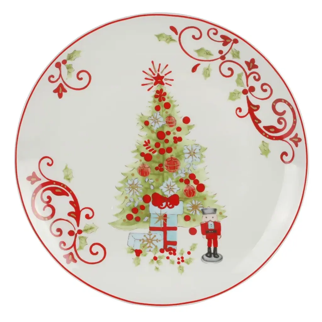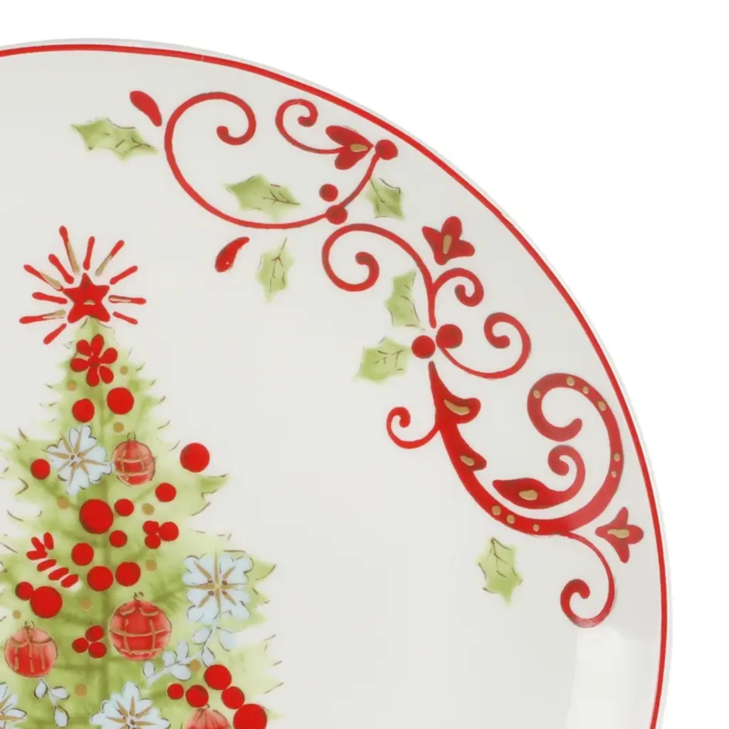 Festive tree features a beautiful scene to adorn your table throughout the holiday season and to carry the inspiration year-round. Seasonal yet versatile to decorate your table. You will love your porcelain dinnerware and will delight and impress your family and guests with the memorable table settings you can create with festive tree.