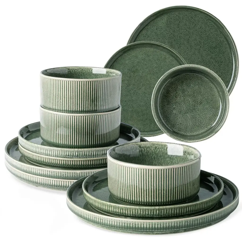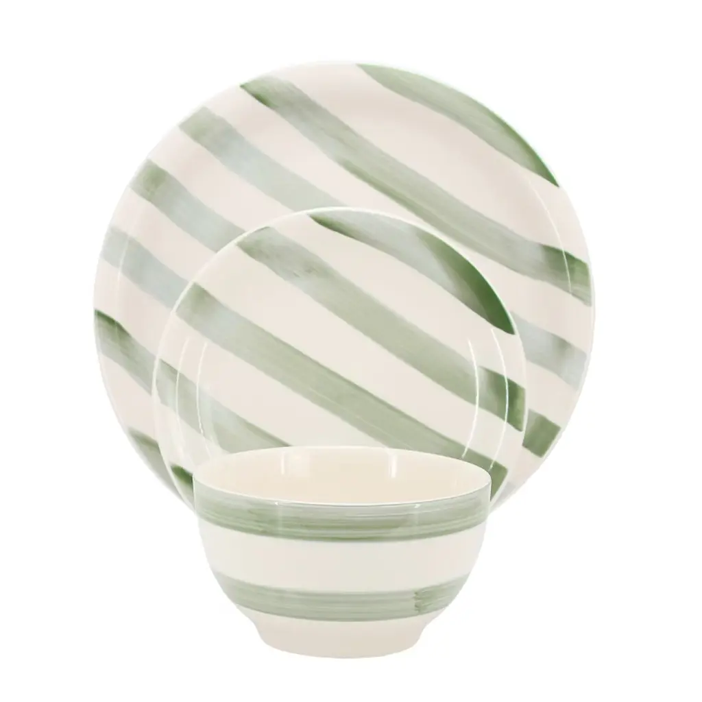 Gibson Home Kenwood Shores 12 Piece Stoneware Dinnerware Set In Green Stripe