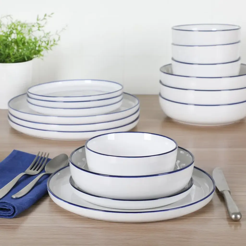The Gibson Home 16-piece dinnerware set is the perfect balance between modern elegance and practicality. Coming in a 16-piece dinnerware set, you’ll have all your table needs with the 4 dinner plates, salad plates, dinner bowls, and cereal bowls. The AB-grade porcelain material makes this set durable and practical for any event from your morning breakfast to a dinner party. The beautiful shape and lipped design add an extra pop of beauty that will make you fall in love with this dinnerware. Enjoy the Gibson Home 16-piece dish set.
