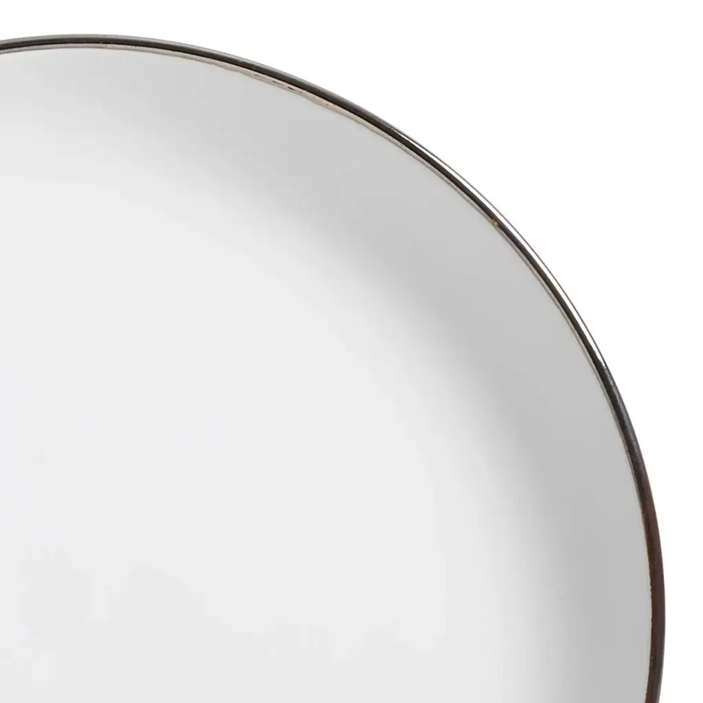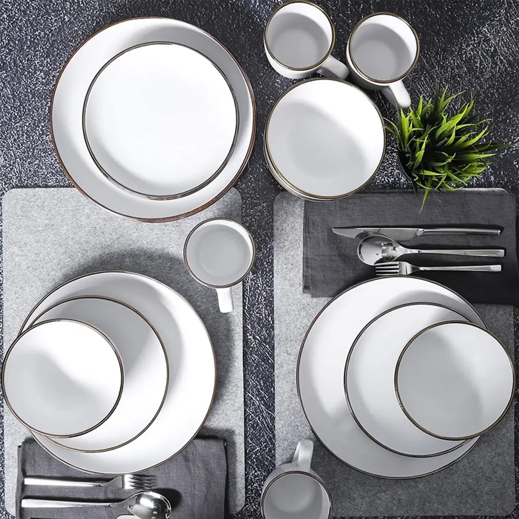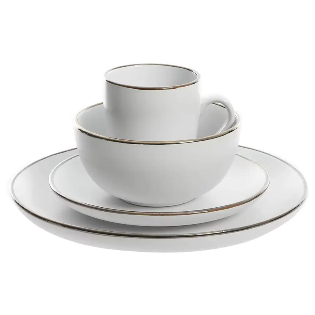 Gibson Home Rockaway Round Stoneware Coupe Edged Dinnerware Set, Service For 4 With Dinner Plates, Dessert Plate, Bowls, & Mugs, White W/ Metallic Rim