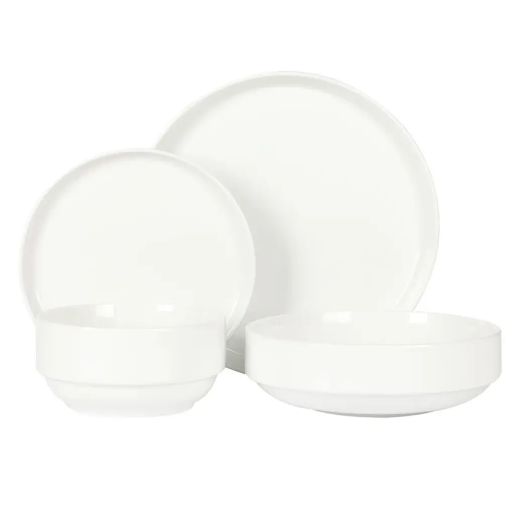 At-home dining and entertaining is all about creating utterly spectacular presentations and unforgettable memories over shared meals. The Rothenberg 16-piece Stackable Porcelain Set from Gibson Home contributes to the impressive visual presentation of your signature recipes and homemade culinary homeruns. Durable porcelain plates and bowls are chip-resistant and easy to clean, perfect for weeknight dinners or weekend celebrations. Set the table with this dinnerware collection and match them with beautiful silverware and other dining pieces with bold prints and patterns. The glazed finish adds shine to each piece for elegant presentations that elevate everyday dining. Share the joy of entertaining with family and friends by gifting them this timeless dinnerware collection for weddings, housewarmings, birthdays, holidays, and more. Dishwasher and microwave safe. Make every home a Gibson Home. A multi-category collection of kitchen and dining essentials, Gibson Home offers affordable elegance for everyday living. Enjoy preparing, cooking, and serving delicious meals in a wide selection of dinnerware, cookware, bakeware, cutlery, glassware, and more. Designed with function, reliability, and versatility, Gibson Home provides dining and entertaining staples to make every mealtime or gathering a culinary success.