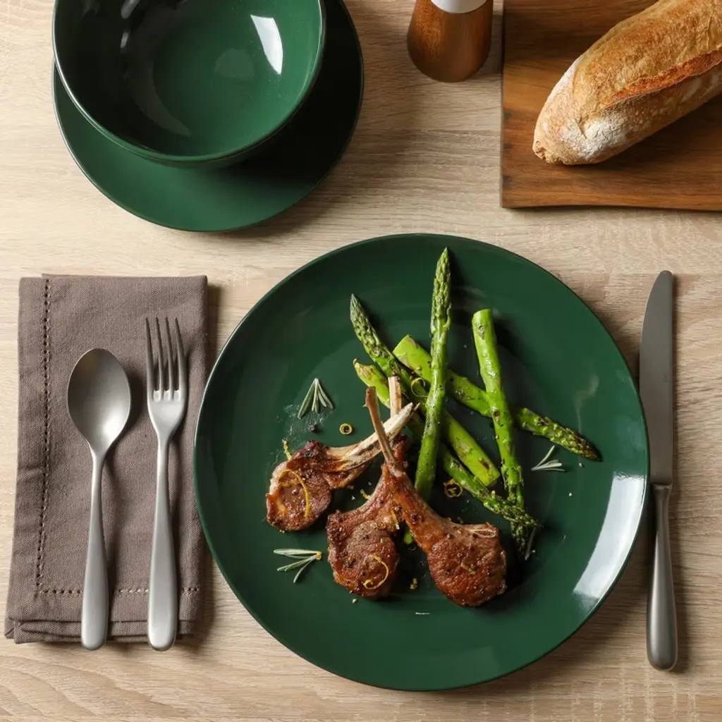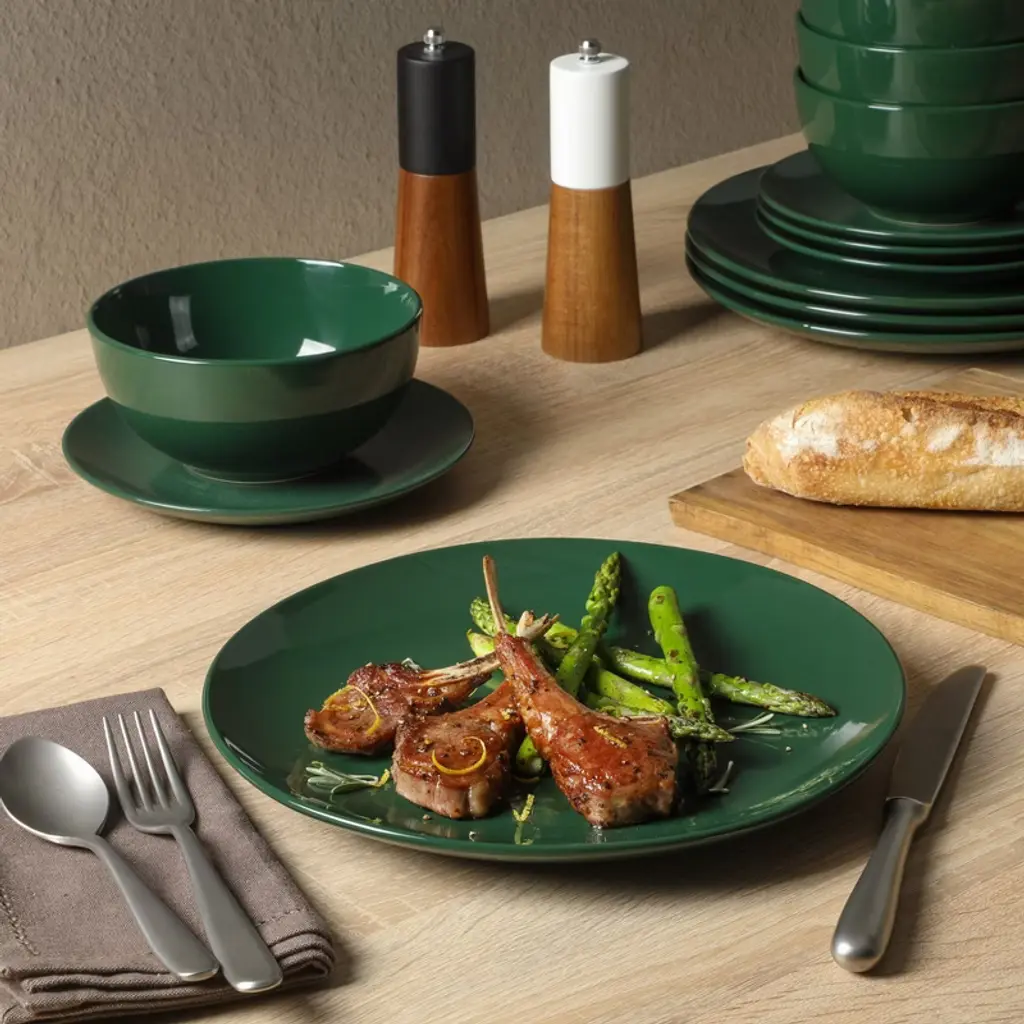 Gibson Home Simple Essential (Service For 4) Plates And Bowls Porcelain Solid Color Dishes Ceramic Dinnerware Set - Hunter Green
