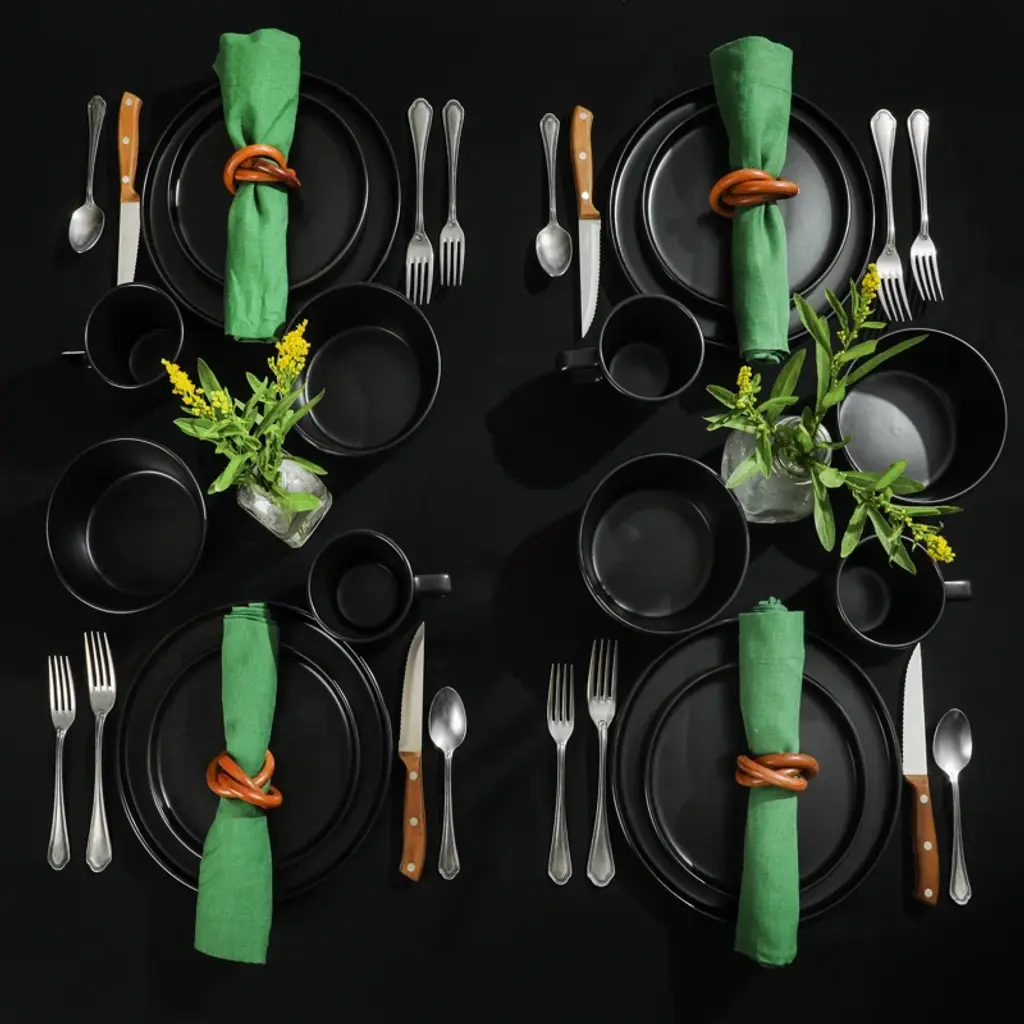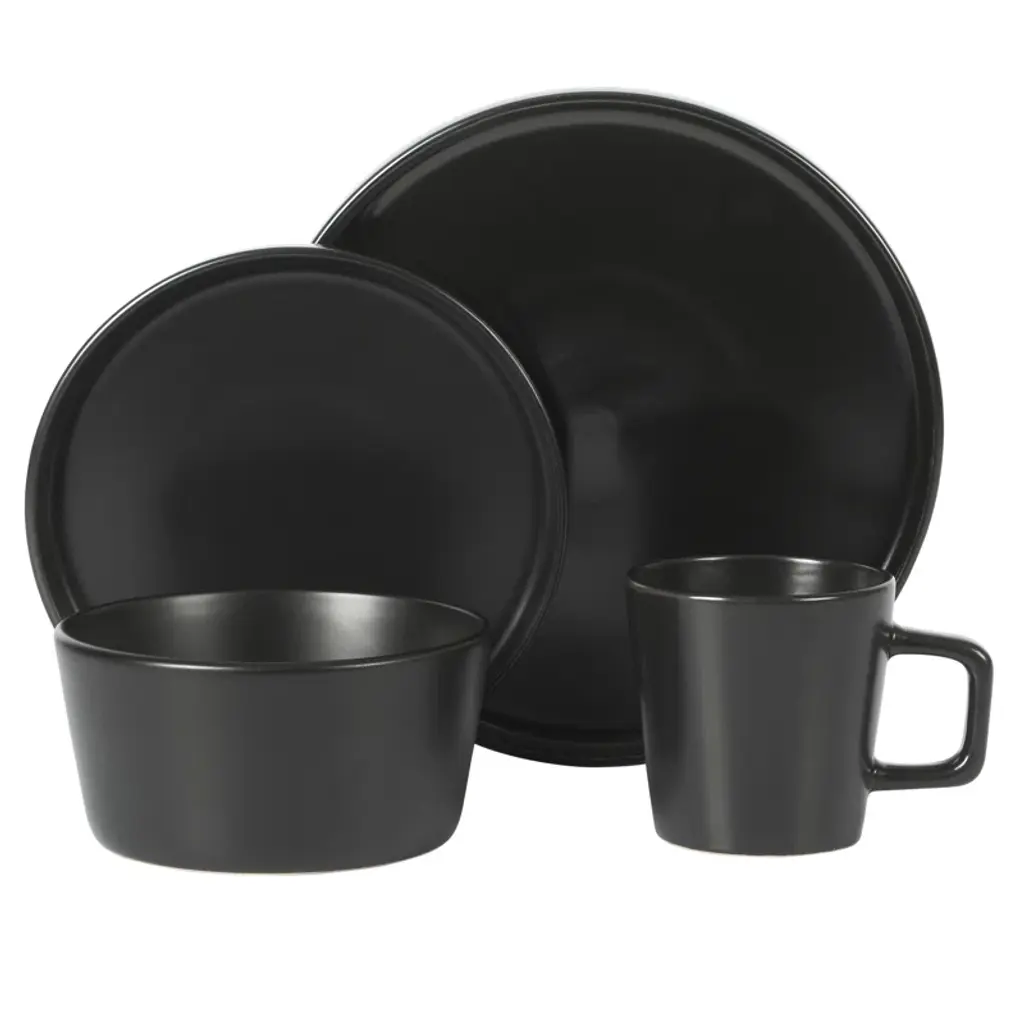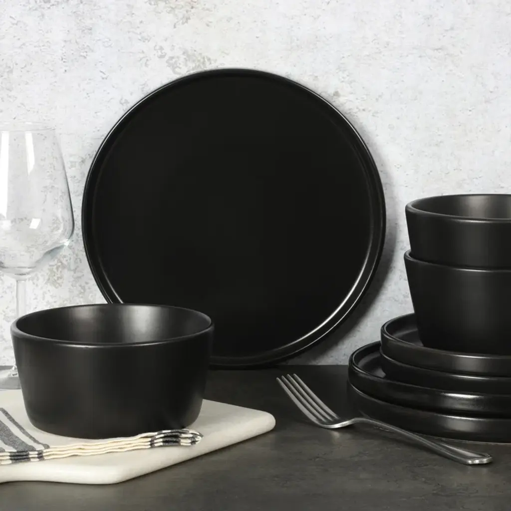 The Gibson Soho Lounge Bowery 32 Piece Matte Black Dinnerware Set comes with all the plates, bowls, and mugs needed to set your dining table with all the must have dishes for an everyday meal or a dinner party. These dishes are not only sleek in design but the stoneware material make these dishes durable as they are both microwave and dishwasher safe. This plates and bowls set matte black finish make these dishes the perfect set to set any table. Enjoy your 32 piece, service for 8, Gibson dinnerware set today.