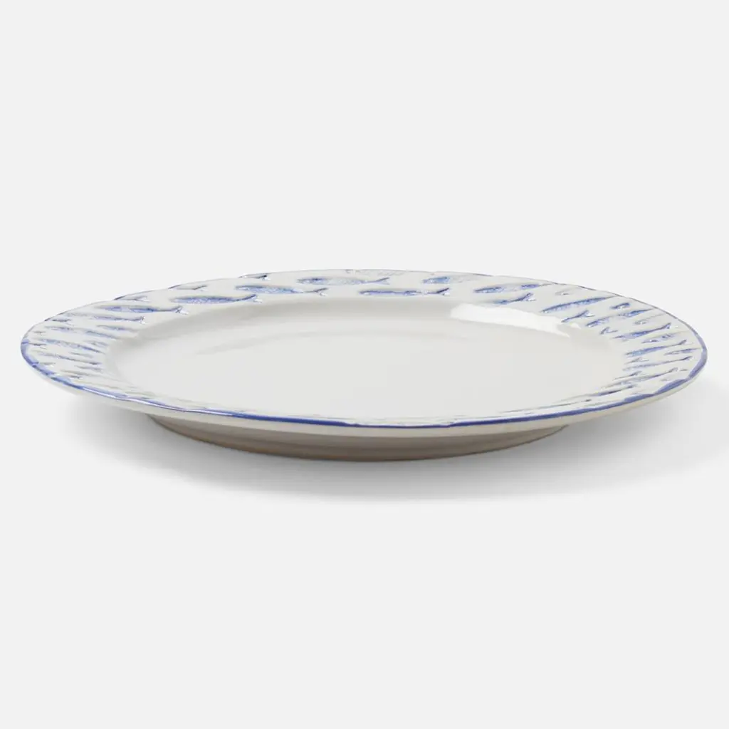 Gideon Coastal White Stoneware Blue Fish Dinner Plate - Set Of 4