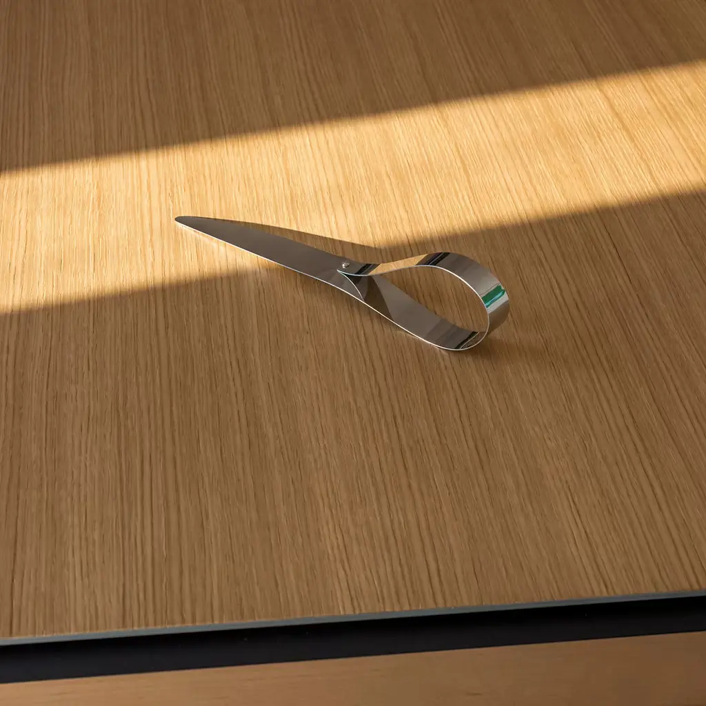 Thoughtful research and extraordinary ability to reinvent everyday objects guided designer Enzo Mari to design this stunning paper knife, distinctive for the minimliast elegance of its silhouette. Fashioned of steel, it showcases a modern take-on contoured profiles with total lack of sharp edges shaping the handle as if it was the half of a soft bow.