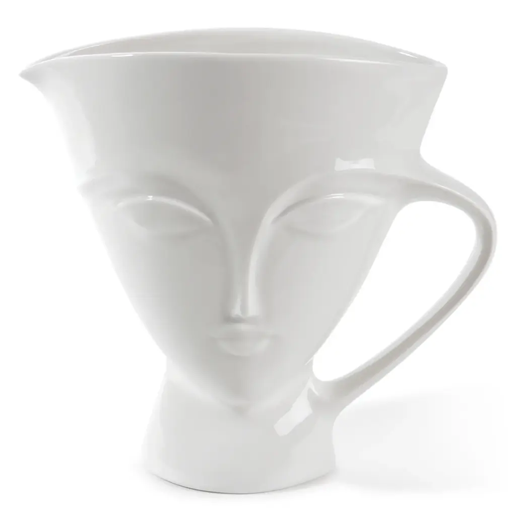 Golden Rule. We've given our iconic Muse collection a face lift. Actually, more like a de -face lift. Subversive signs and symbols rendered in glittering gold adorn the glossy high fired porcelain pieces—signature favorites with the glamour cranked up to 11. A kiss of cool for your morning cuppa, afternoon tea, or late night toddy. Inspired by Gala, wife and muse of surrealist painter and printmaker, Salvador Dalí. Jonathan sculpts and throws the models for our Muse pottery and then substitutes our signature geometric relief patterns with body parts—faces, breasts, lips—to create a surreal style. Pieces are inspired by our favorite artists' muses.