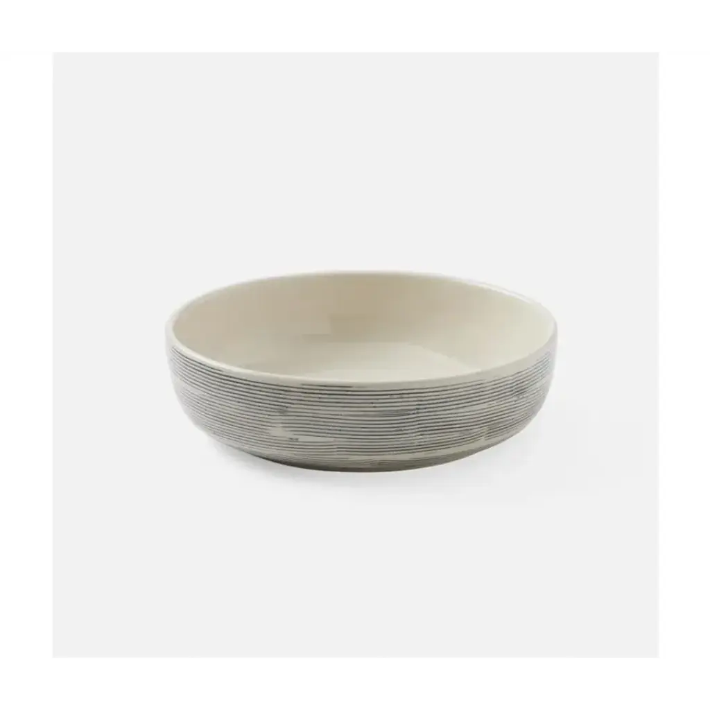 **Please note all sales are final.**The Sandstone Collection is handcrafted from a warm brown stoneware clay then carved. No two are ever quite the same. Gina DeSantis Ceramics creates well-crafted wares for the home and table. Each piece is individually made with care. As a potter for over twenty years her work blends functionality and quality to bring timeless pieces into your home. * Stoneware clay, glaze * Microwave and dishwasher safe. * Made in the USA#### *Dimensions*6 diameter x 1 tall