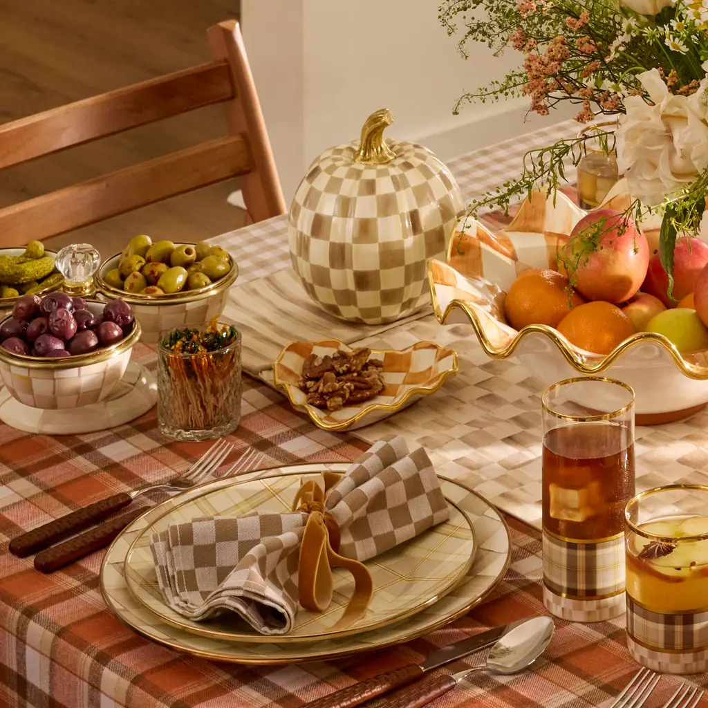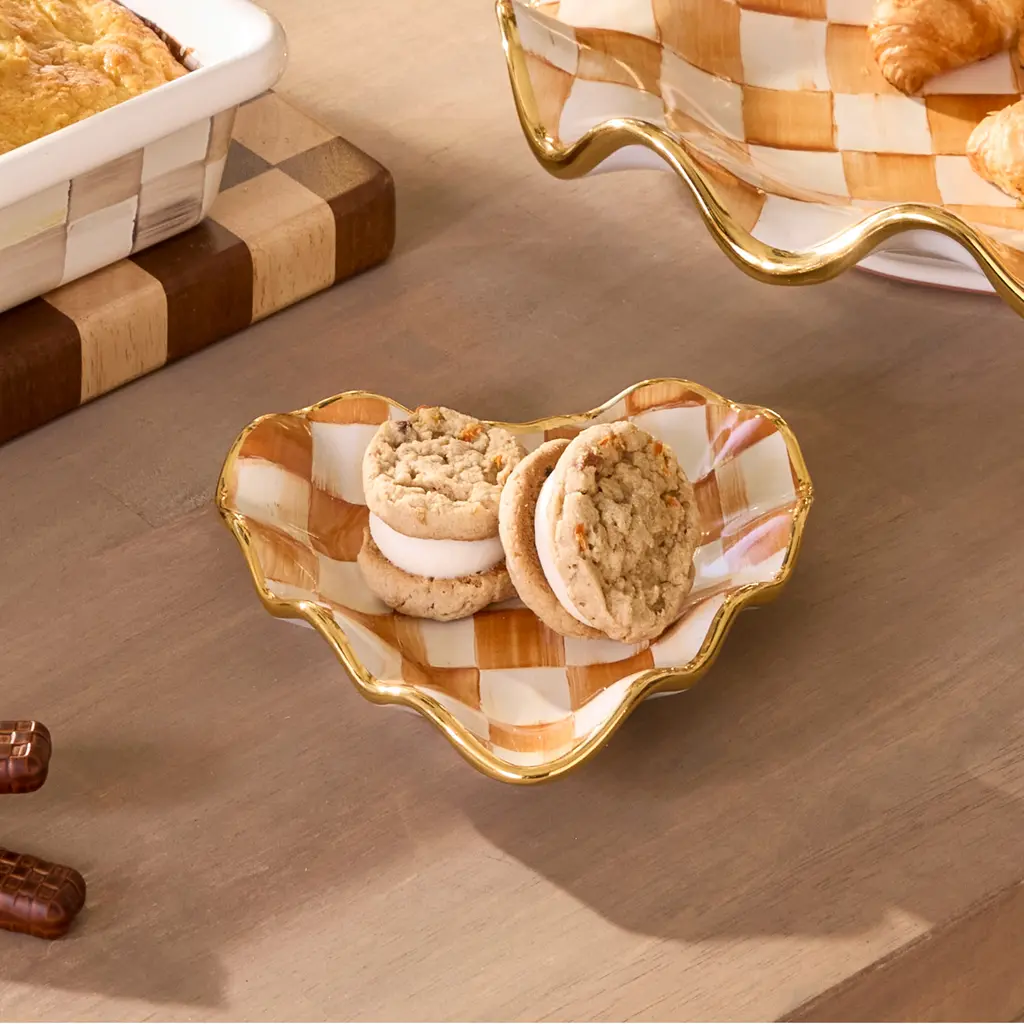 A sweetheart of a shape, the Ginger Check Fluted Ceramic Heart Plate is a blissful addition to any home, and a thoughtful gift for a beloved friend. Handmade and hand-painted in a range of warm brown hues, it's trimmed with gold lustre and stamped by the Aurora artisans involved in its creation.