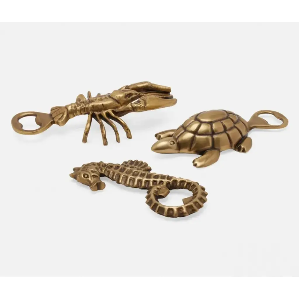 Ginger Mermaid Bottle Openers, Antique Brass, Set Of 2