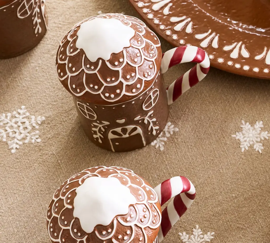 Gingerbread House Lidded Stoneware Mugs - Set Of 4