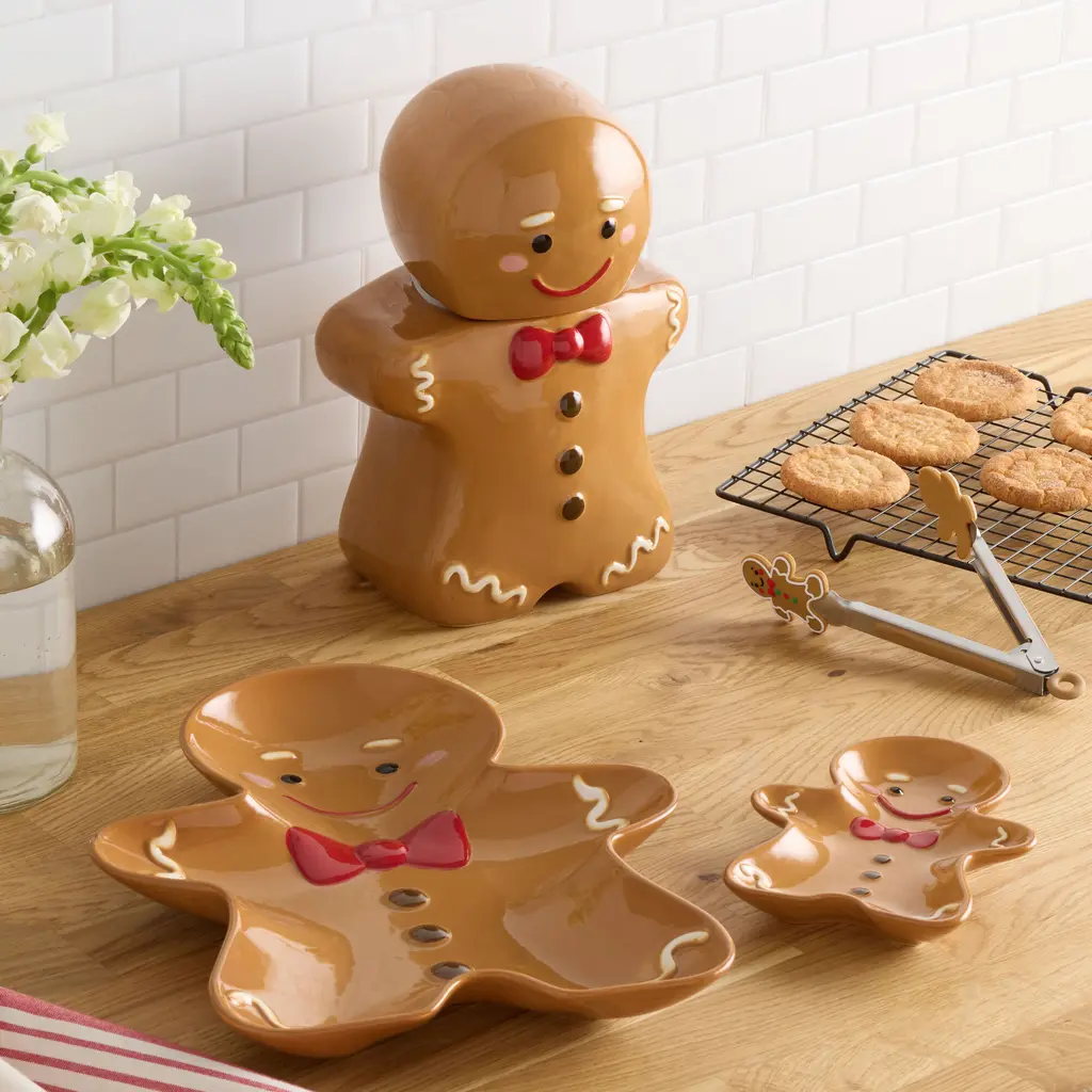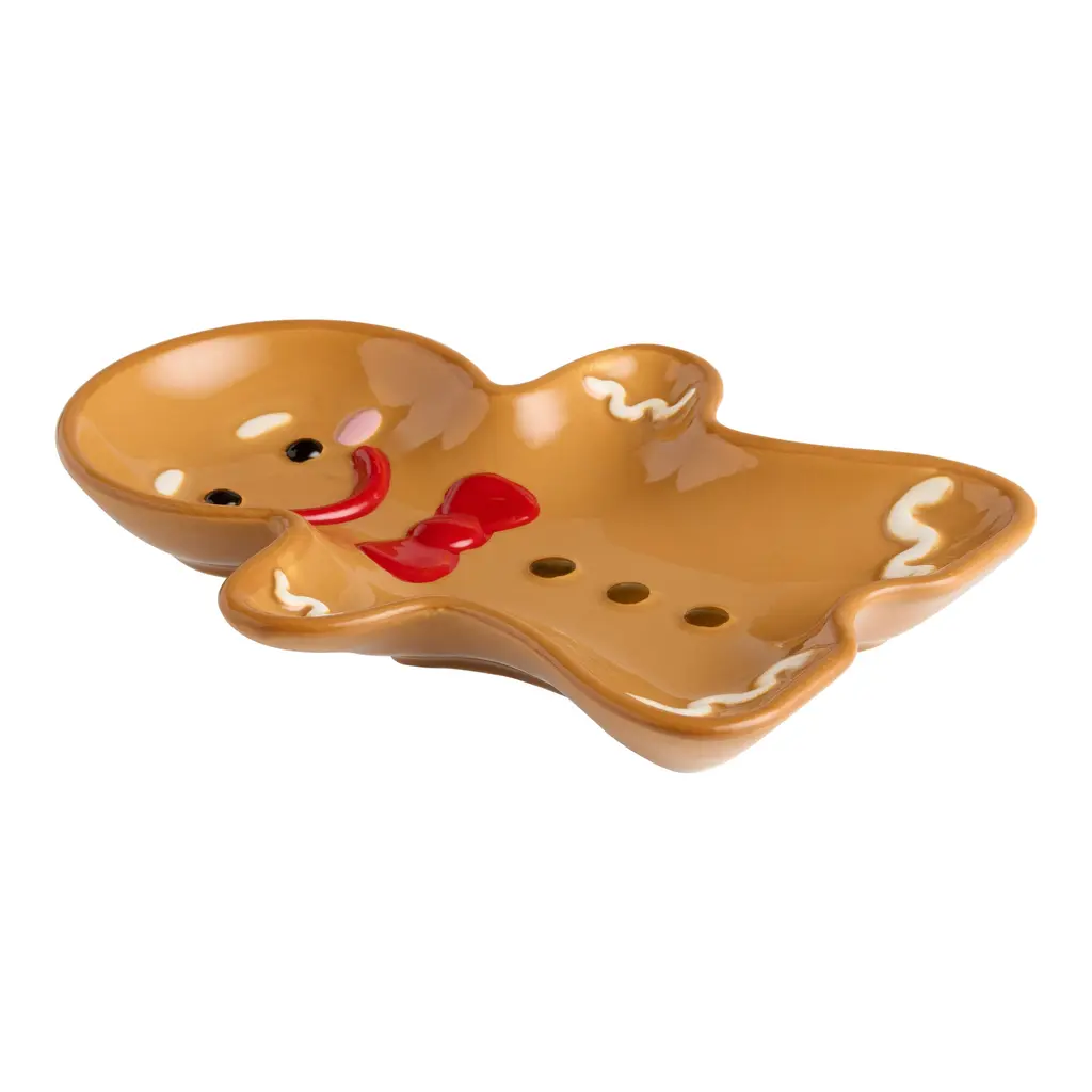 Our collectible spoon rest brings the festive figure of a traditional holiday gingerbread man to life with sweet hand-painted details. This adorably decorated spoon saver features a bright red smile and cute bowtie, chocolate-colored buttons, sweet pink cheeks and fun frosting-white flourishes. A handcrafted addition to a baker's stocking or cook's gift bag, this affordable kitchen companion is always happy to keep messy utensils off the counter.