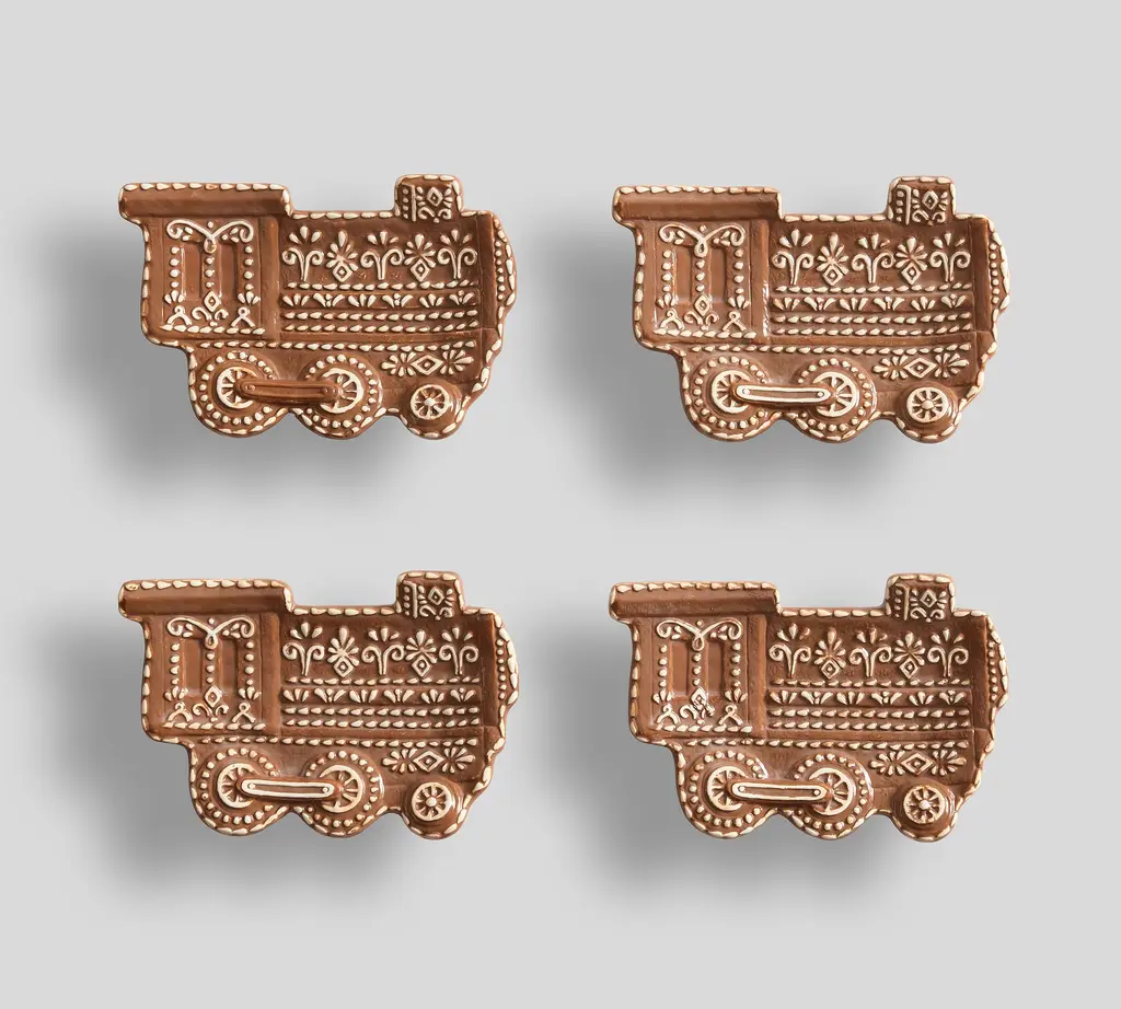 Gingerbread Train Stoneware Appetizer Plates - Set Of 4