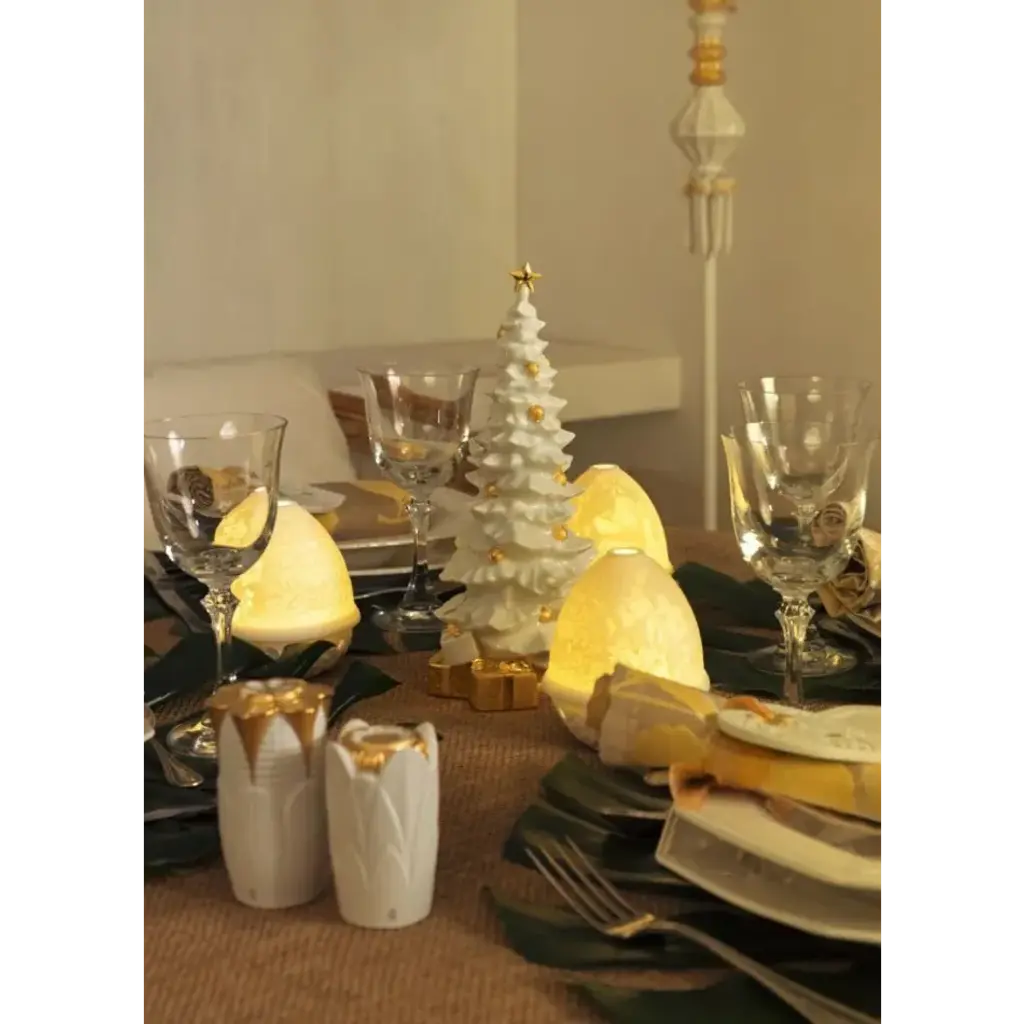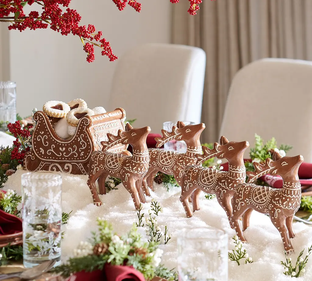 A nod to one of the holiday’s sweetest traditions, this collection brings whimsy to the table. Crafted from stoneware and hand-painted with an intricate “sugar icing” design, these appetizer plates add that extra special touch to holiday entertaining.