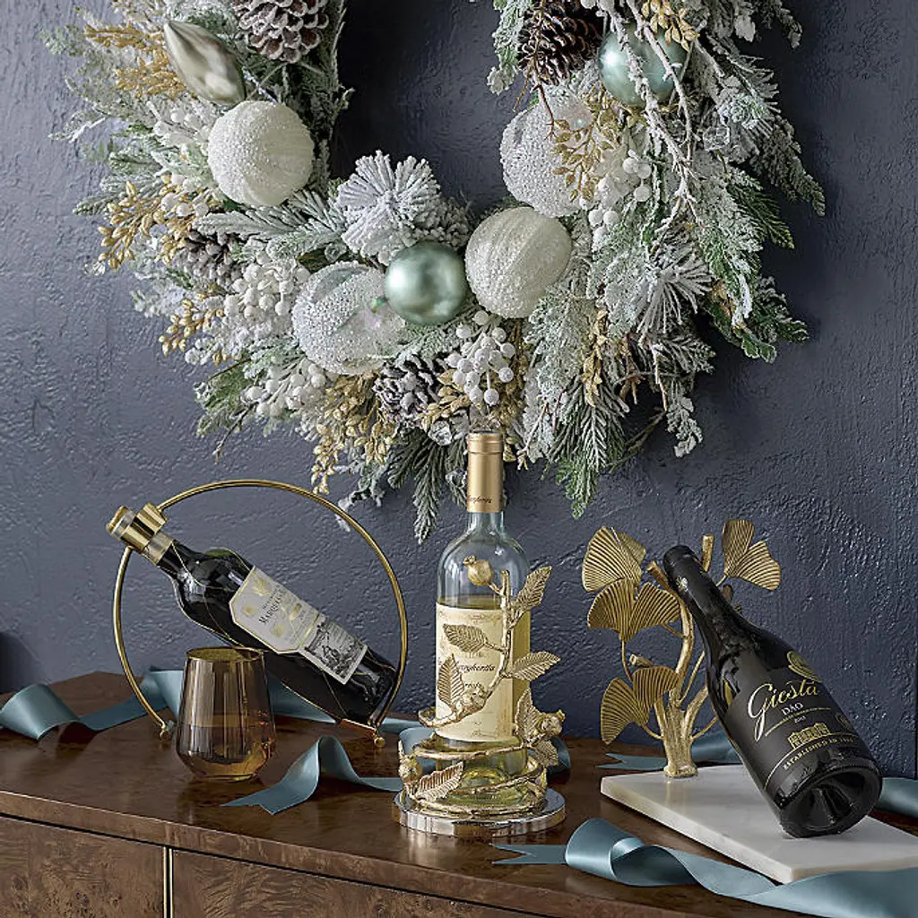 Featuring an indent marble base, our Ginkgo Leaf Wine Bottle Holder adds organic beauty to any table while displaying your favorite vintage. Flexible gold-finished leaves can be adjusted to hold various sizes and shapes of bottles. Makes a great gift for wine lovers.Crafted of brass and white marbleCan be adjusted to fit a variety of bottle sizes and shapesWipe clean with a soft, dry clothA Frontgate exclusive.At Frontgate, our primary focus is quality. We guarantee that every product we sell will stand up to the supreme test – our customers' satisfaction. To learn more about our policies, visit our Shipping & Processing, Returns & Exchanges and Warranty & Price Guarantee pages.Featuring an indent marble base, our Ginkgo Leaf Wine Bottle Holder adds organic beauty to any table while displaying your favorite vintage. Flexible gold-finished leaves can be adjusted to hold various sizes and shapes of bottles. Makes a great gift for wine lovers.Crafted of brass and white marbleCan be adjusted to fit a variety of bottle sizes and shapesWipe clean with a soft, dry clothA Frontgate exclusive.At Frontgate, our primary focus is quality. We guarantee that every product we sell will stand up to the supreme test – our customers' satisfaction. To learn more about our policies, visit our Shipping & Processing, Returns & Exchanges and Warranty & Price Guarantee pages.