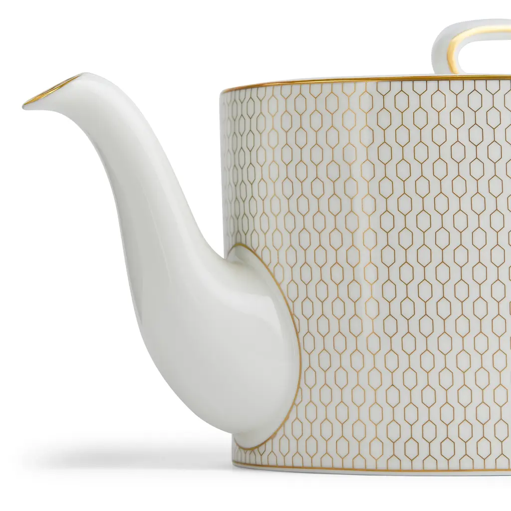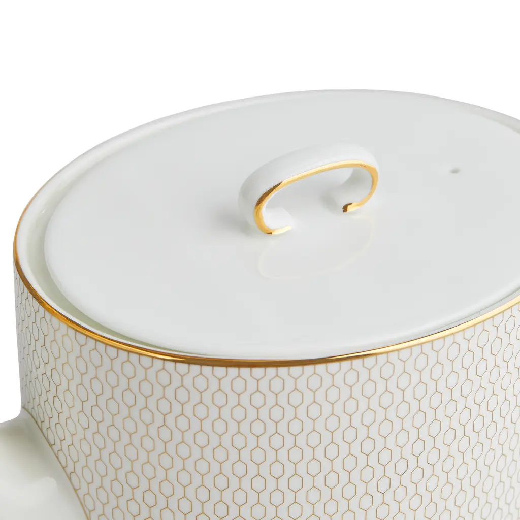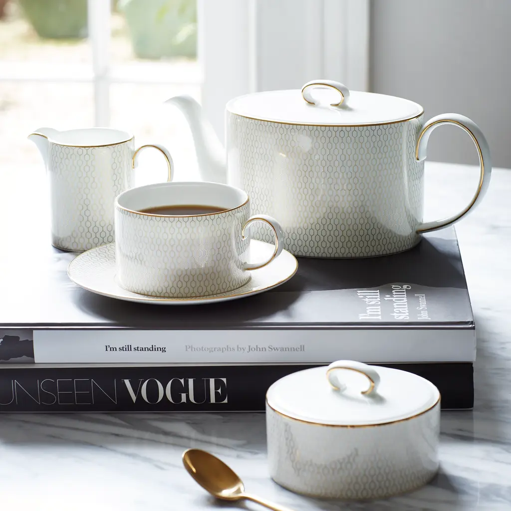 Epitomizing the fusion of craftsmanship and design, Wedgwood's Geo Gold collection makes a warm yet modern statement with crisp, geometric patterns and texture-rich ceramics.