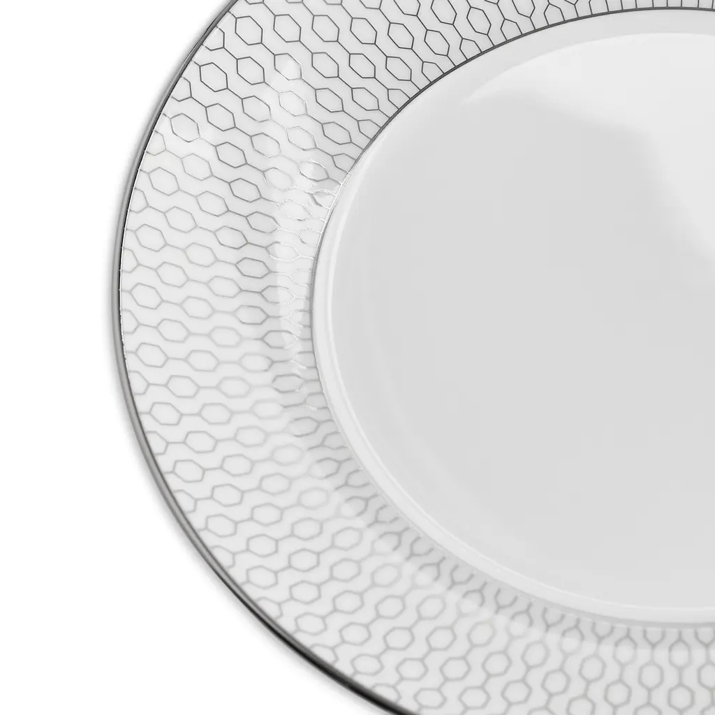 Mark special moments with Wedgwood's Gio Platinum collection of dinnerware and serving pieces. Crafted from fine bone china, pieces feature a contemporary metallic pattern that adds elegant simplicity to any occasion while layering beautifully with Wedgwood's Gio White and Gio Gold collections.