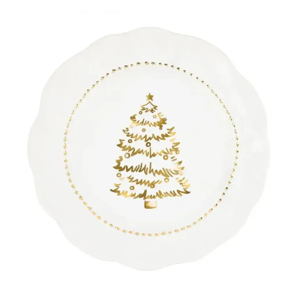 Giorno di Festa translates to a day of happy events," and this sophisticated, joyful dinnerware ensures just that. A simple gold tree and wreath adorn the Giorno di Festa Dinnerware and the result is timeless. You will enjoy this collection every holiday season for decades to come. Since 1983, Vietri has specialized exclusively in Italian handcrafted ceramics, stainless and pewter flatware, mouth blown glassware, lamps, urns and planters. Families of artisans with 3 or 4 generations of history create these special pieces using centuries-old techniques. The subtle color from a paintbrush and the curving stroke of the artist's hand are never repeated in quite the same way, making each piece truly unique.