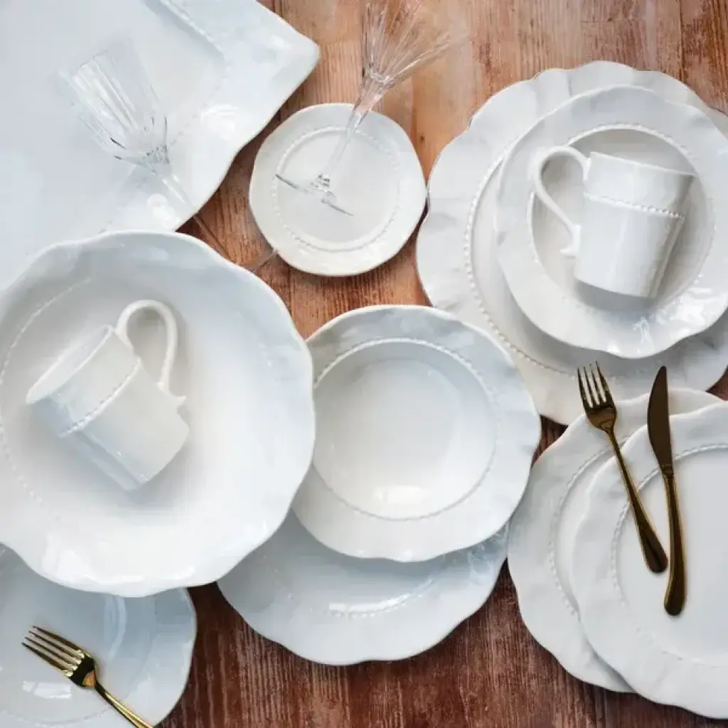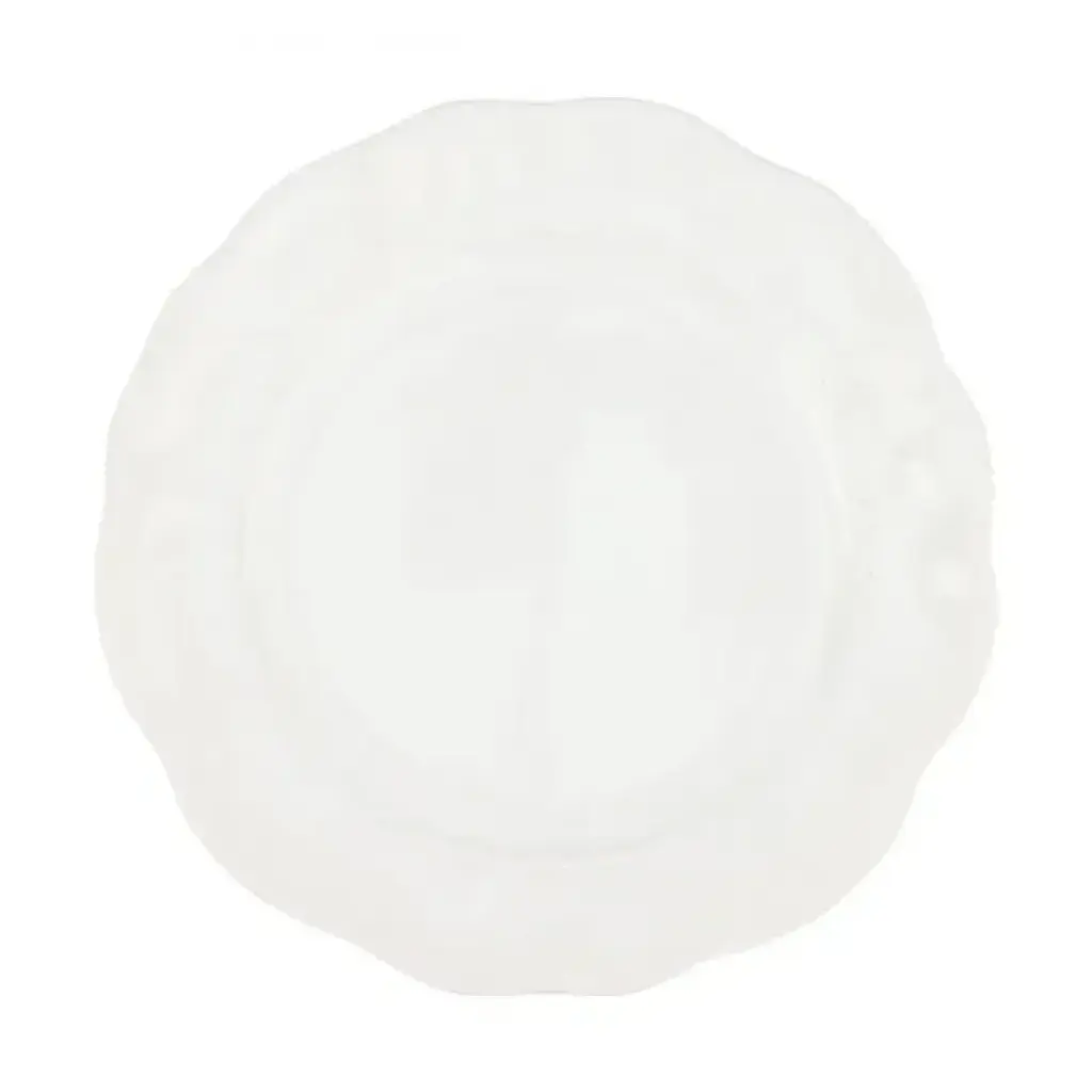 The Giorno White Dinnerware captures the essence of casually elegant Italian style, blending both relaxed and refined elements. A wreath of precise etchings encircles the plate, while the nuanced glazing adds a beautiful patina to each piece. Since 1983, Vietri has specialized exclusively in Italian handcrafted ceramics, stainless and pewter flatware, mouth blown glassware, lamps, urns and planters. Families of artisans with 3 or 4 generations of history create these special pieces using centuries-old techniques. The subtle color from a paintbrush and the curving stroke of the artist's hand are never repeated in quite the same way, making each piece truly unique.