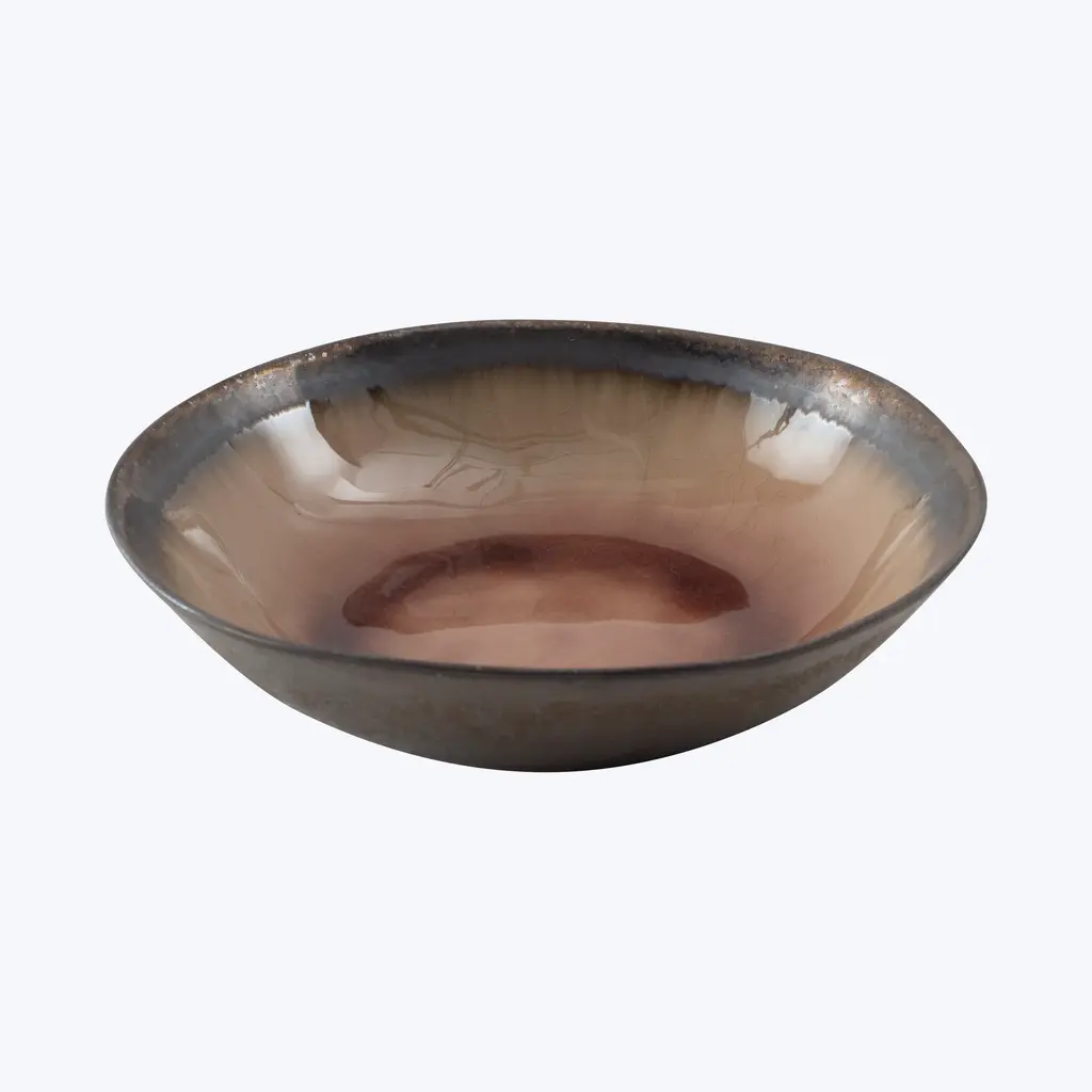 Fusing Eastern and Western styles, philosophies, and techniques, stoneware ceramics are crafted in Thailand. Cool tones brilliantly crackle in a marine habitat - a play of shadows, light, and texture. Each piece features one-of-a-kind crystalized designs inspired by pools of water.