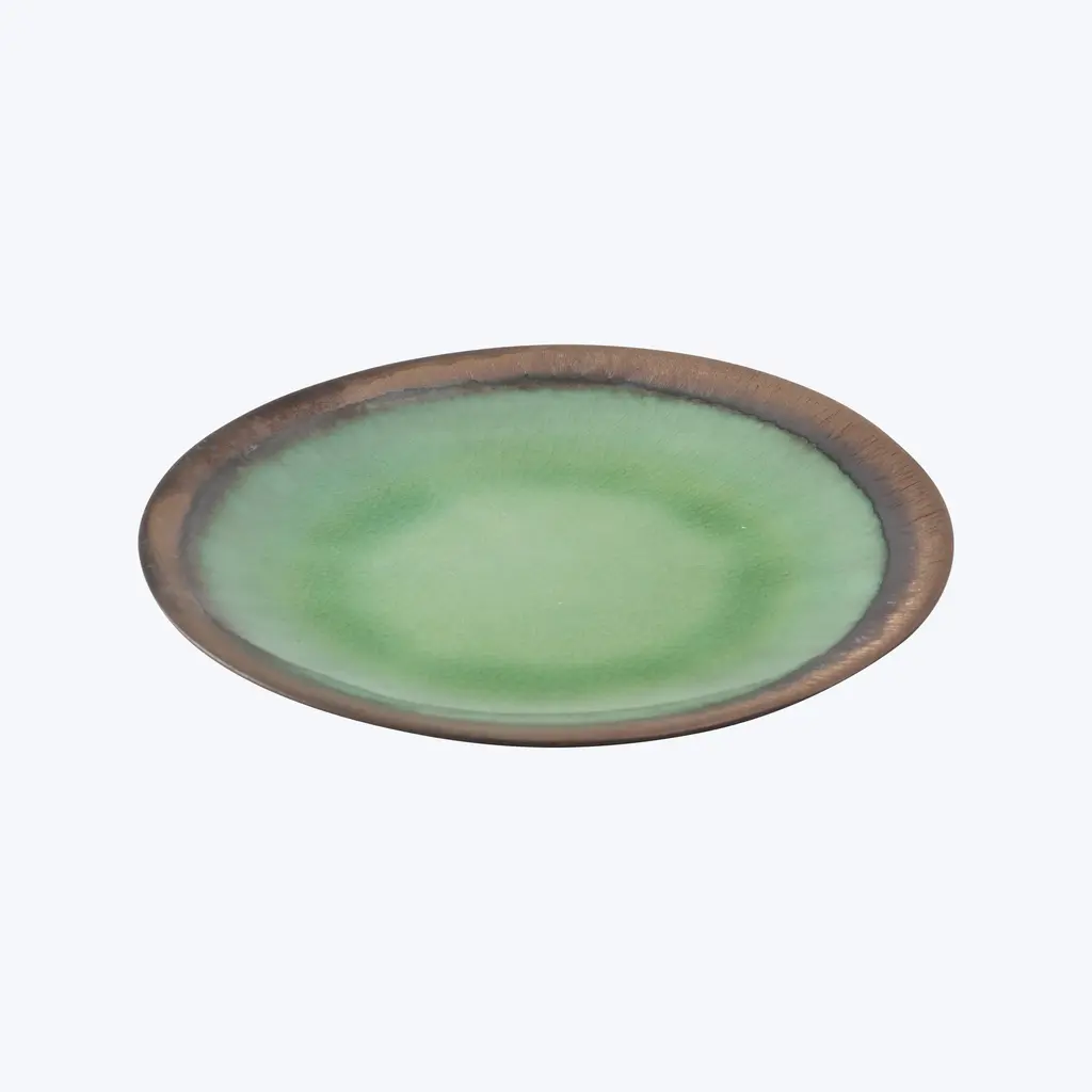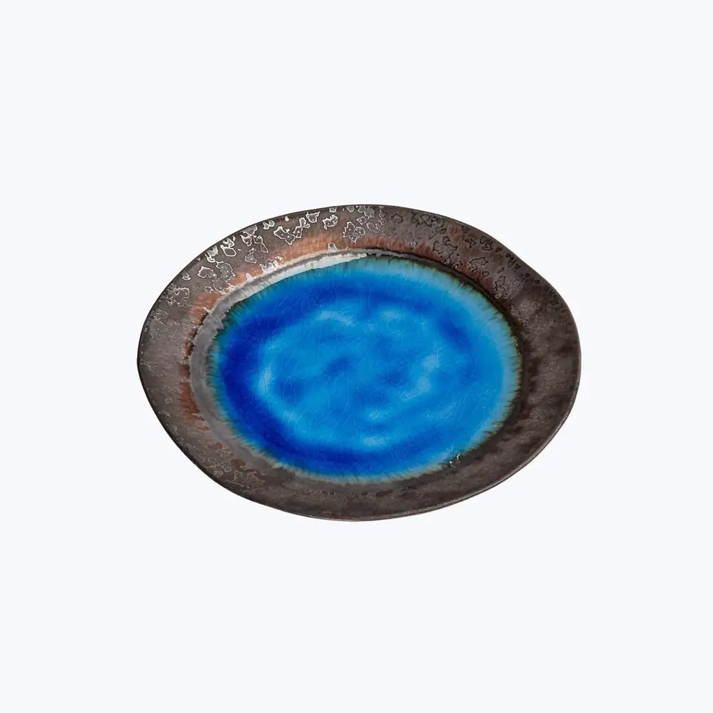 Fusing Eastern and Western styles, philosophies, and techniques, stoneware ceramics are crafted in Thailand. Cool tones brilliantly crackle in a marine habitat - a play of shadows, light, and texture. Each piece features one-of-a-kind crystalized designs inspired by pools of water.