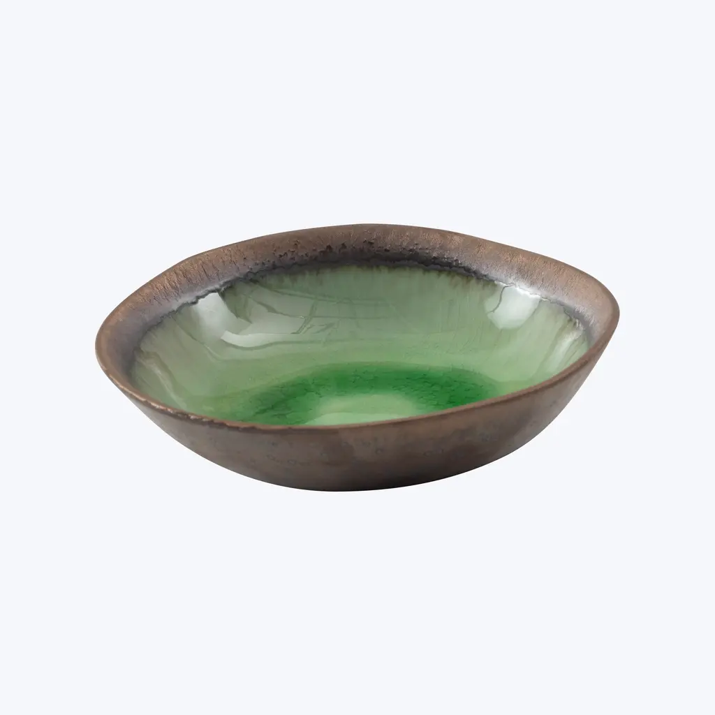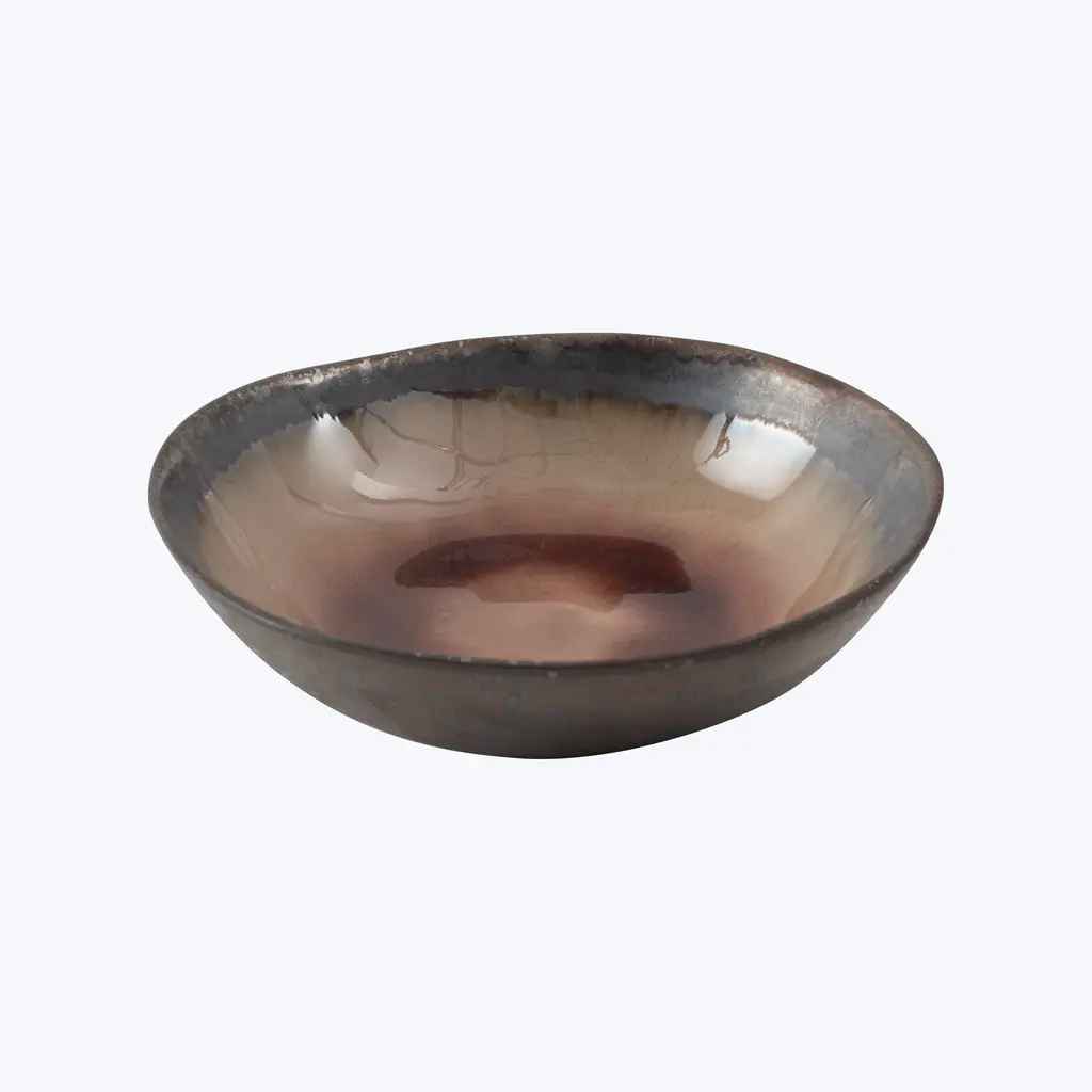 Fusing Eastern and Western styles, philosophies, and techniques, stoneware ceramics are crafted in Thailand. Cool tones brilliantly crackle in a marine habitat - a play of shadows, light, and texture. Each piece features one-of-a-kind crystalized designs inspired by pools of water.