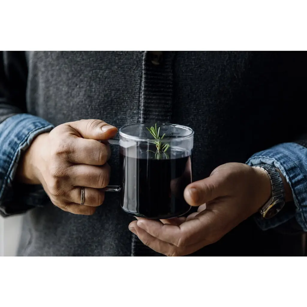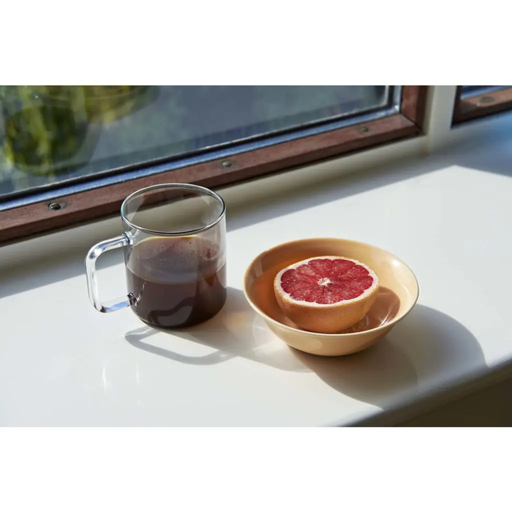 The beautiful glass coffee mug from HAY’s Kitchen Market collection is made of strong borosilicate glass, which can stand both hot and cold temperatures. The glass cup is dishwasher-safe. The Kitchen Market collection from HAY combines Danish design with global influences. It features distinct kitchenware in diverse ranges of textures and colors.