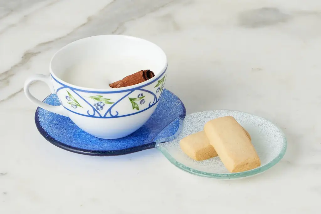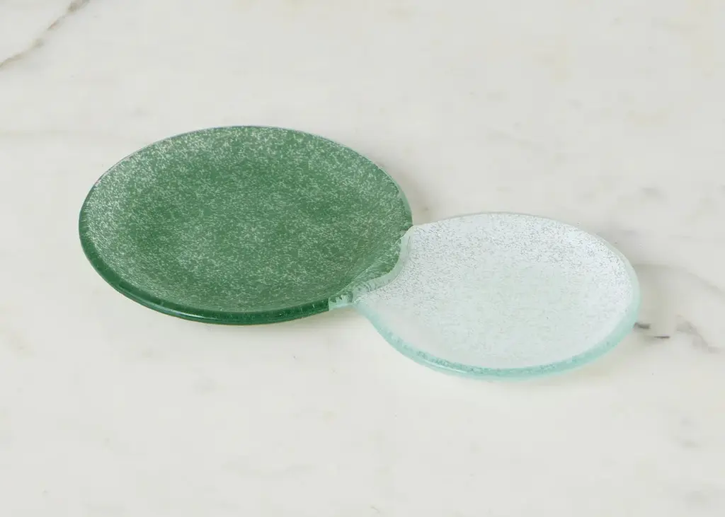 Redefine casual elegance with our Glass Snack and Tea Duo Plate. Handcrafted in Turkey through a meticulous mold-forming process, each plate is shaped from a single sheet of glass and finished with smooth, rounded edges. The color is baked directly into the glass, ensuring a lasting finish that remains vibrant and dishwasher safe. Thoughtfully designed to hold a small snack alongside your favorite tea or coffee, this duo plate is perfect for quiet moments or entertaining with style. Its minimalist form and artisan character make it a standout addition to any tabletop. Dishwasher safe. Each bowl may slightly vary in size and shape due to the artisanal nature of the product.
