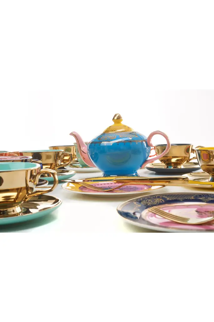 A fairy tale comes to life, Grandpa's teapots are fancy and whimsical. With its intricate golden accents, and glossy pastel color combination, these side plates are playfully elegant statement pieces.