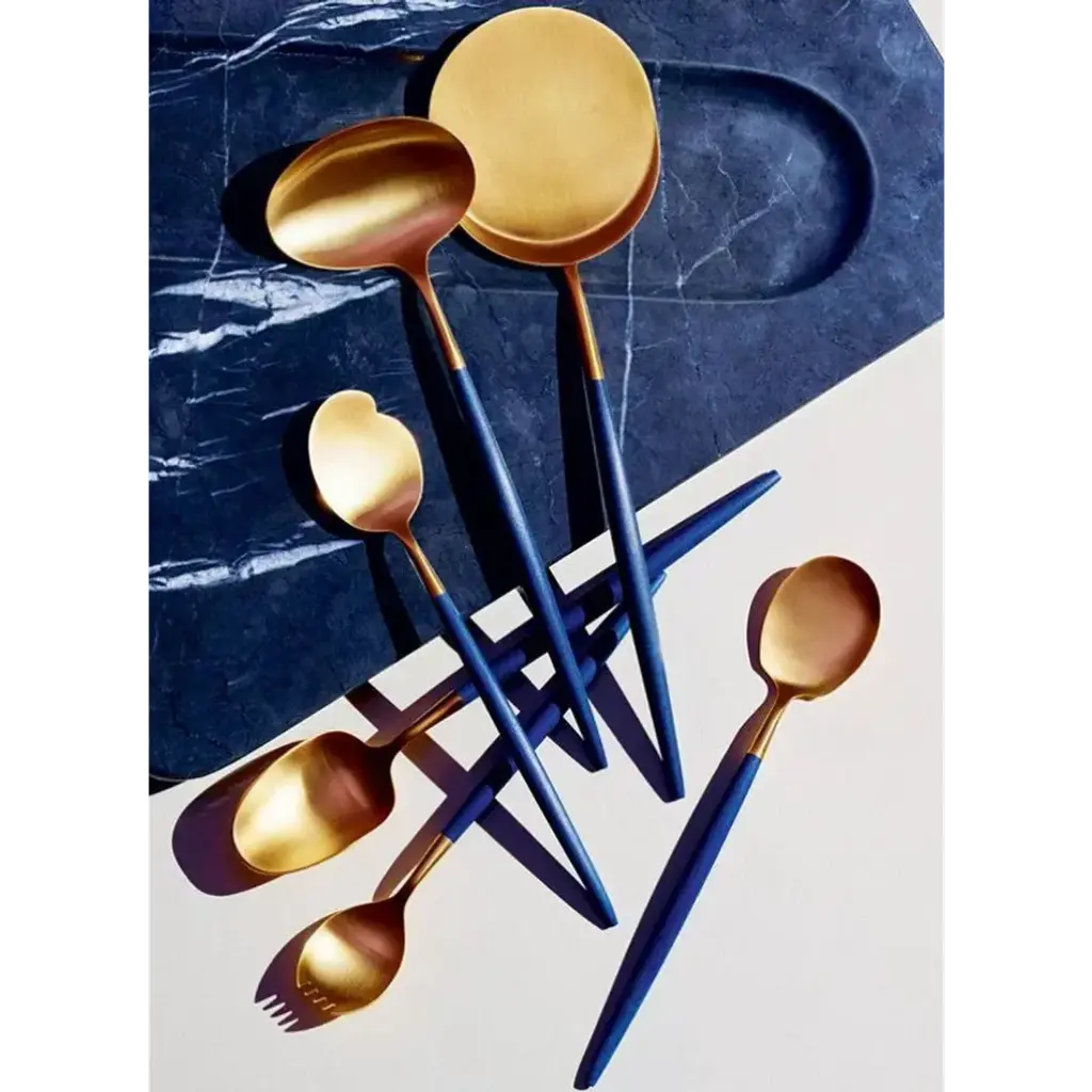 Design José Joaquim Ribeiro. Based in Portugal, Cutipol produces refined collections of flatware that are both practical and beautiful to use. Favorites of designers and party planners worldwide, Cutipol flatware is available in a large range of finishes, including stainless steel, gold, copper, and black. As Cutipol's best-selling collection, Goa's delicate pieces represent the perfect symbiosis of west and east. Please allow 4 months for delivery.