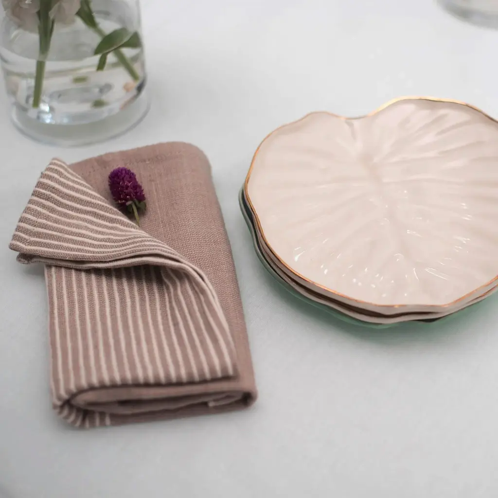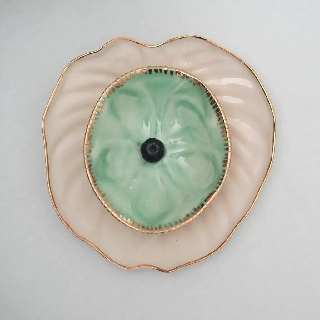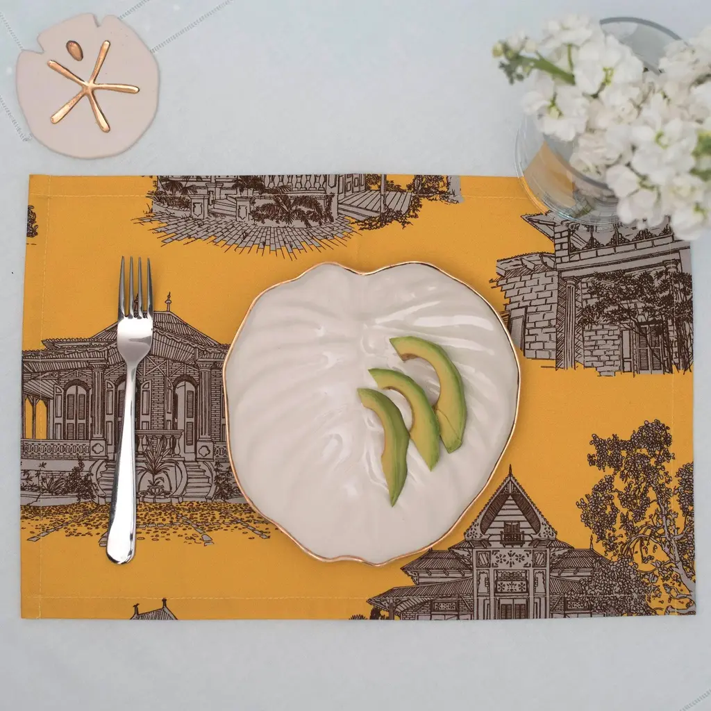 The Gold Salad Plates Set 2 are handmade in Jamaica with a design inspired by a leaf of the philodendron tropical plant. Consider the gold dishes for a bridal shower gift or dining room setting. Each gold plate has an18k gold rim. From a snack to tapas, the gold dinner plates will deliver a relaxing dose of island life year-round.