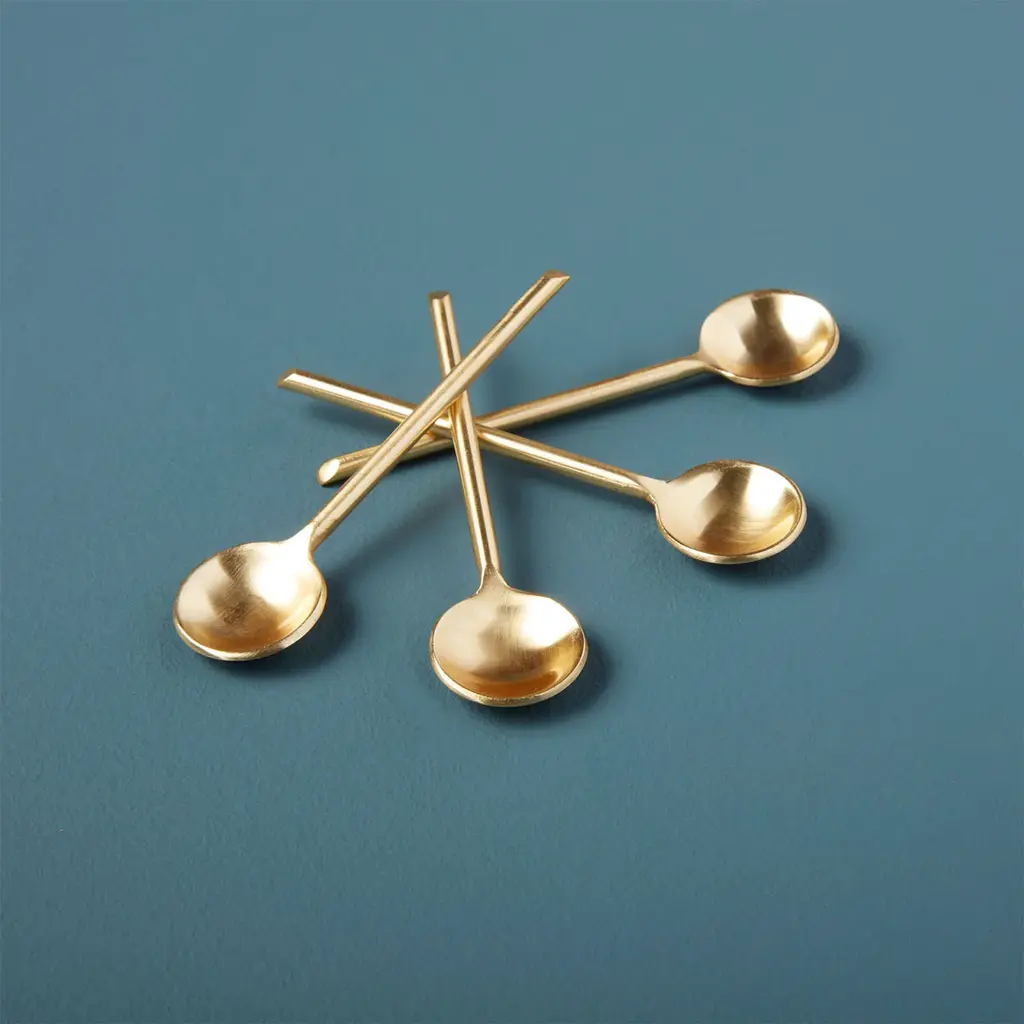 All that glitters may not be gold, but these Gold Thin Spoons, Set of 4 certainly are. Stir your coffee or tea in chic style with these aurous thin spoons. Ethically crafted in small batches and imbued with a food-safe coating, this set of 4 gold serving spoons is the perfect accent on your charcuterie board for serving jams, soft cheese, and more.