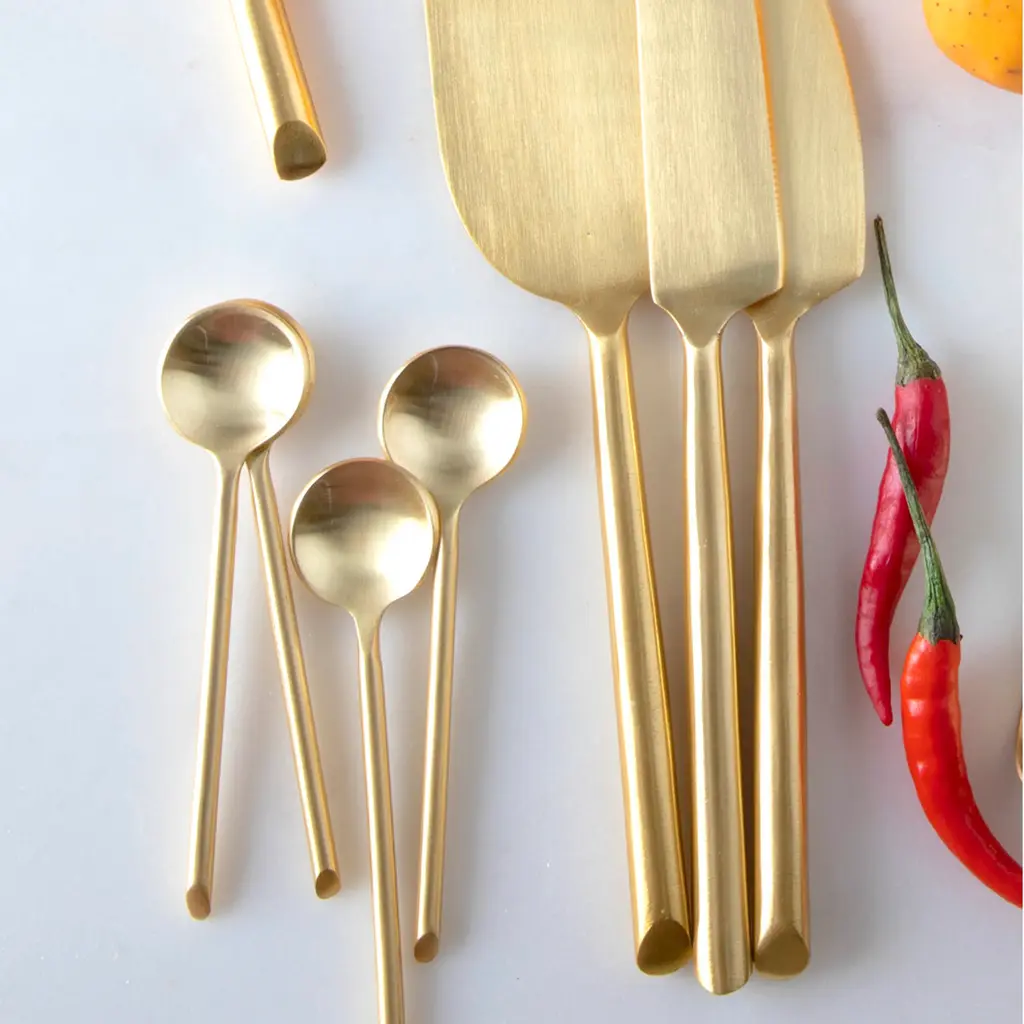 All that glitters may not be gold, but these Gold Thin Spoons, Set of 4 certainly are. Stir your coffee or tea in chic style with these aurous thin spoons. Ethically crafted in small batches and imbued with a food-safe coating, this set of 4 gold serving spoons is the perfect accent on your charcuterie board for serving jams, soft cheese, and more.