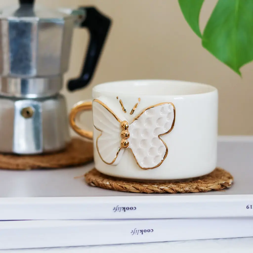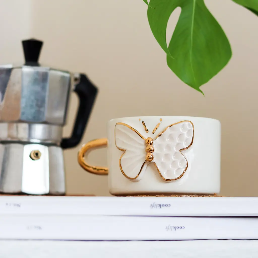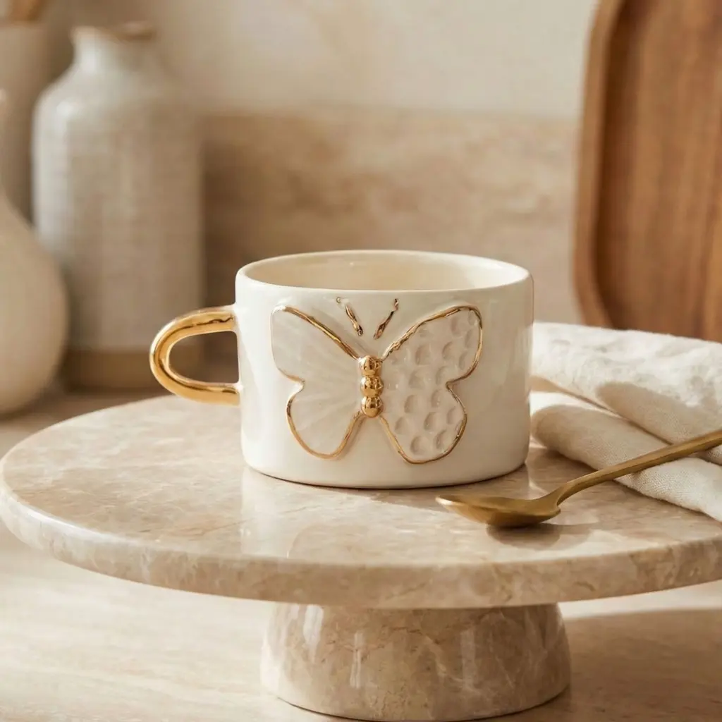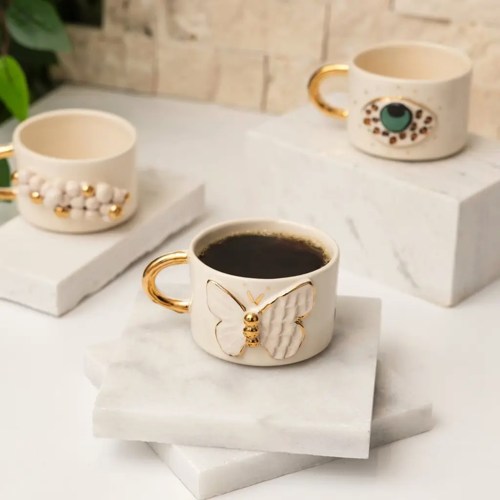 Immerse yourself in the delicate beauty of Turkish craftsmanship with this exquisite Butterfly Handmade Ceramic Mug. This piece effortlessly blends traditional ceramic artistry with a touch of modern elegance. The natural ceramic base is lovingly glazed, providing a smooth, refined surface that enhances the intricate butterfly design. Gold-plated accents add a luxurious finish, making this mug not only a functional piece but a work of art. Perfect for your morning coffee or afternoon tea, it also serves as a thoughtful gift for lovers of unique, handcrafted items.