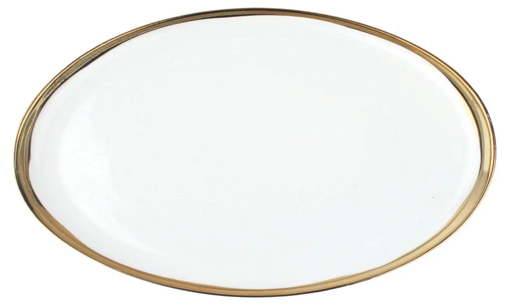 A classically inspired collection which combines the majestic look of 24K gold with the purity of white Fine Bone China. The edges in this collection are perfectly hand painted. This collection has been designed with sophistication, minimalism and purity as our inspirations. With contemporary shapes and a complete collection to choose from, we offer elegance and modernity from the Golden Edge Collection by Twig New York.Ideal as serving plateOne plate per boxFine Bone China with 24K Gold hand-painted rimDue to hand-painted nature of the process, the gold finish may contain variations and brush strokesGolden Edge Collection