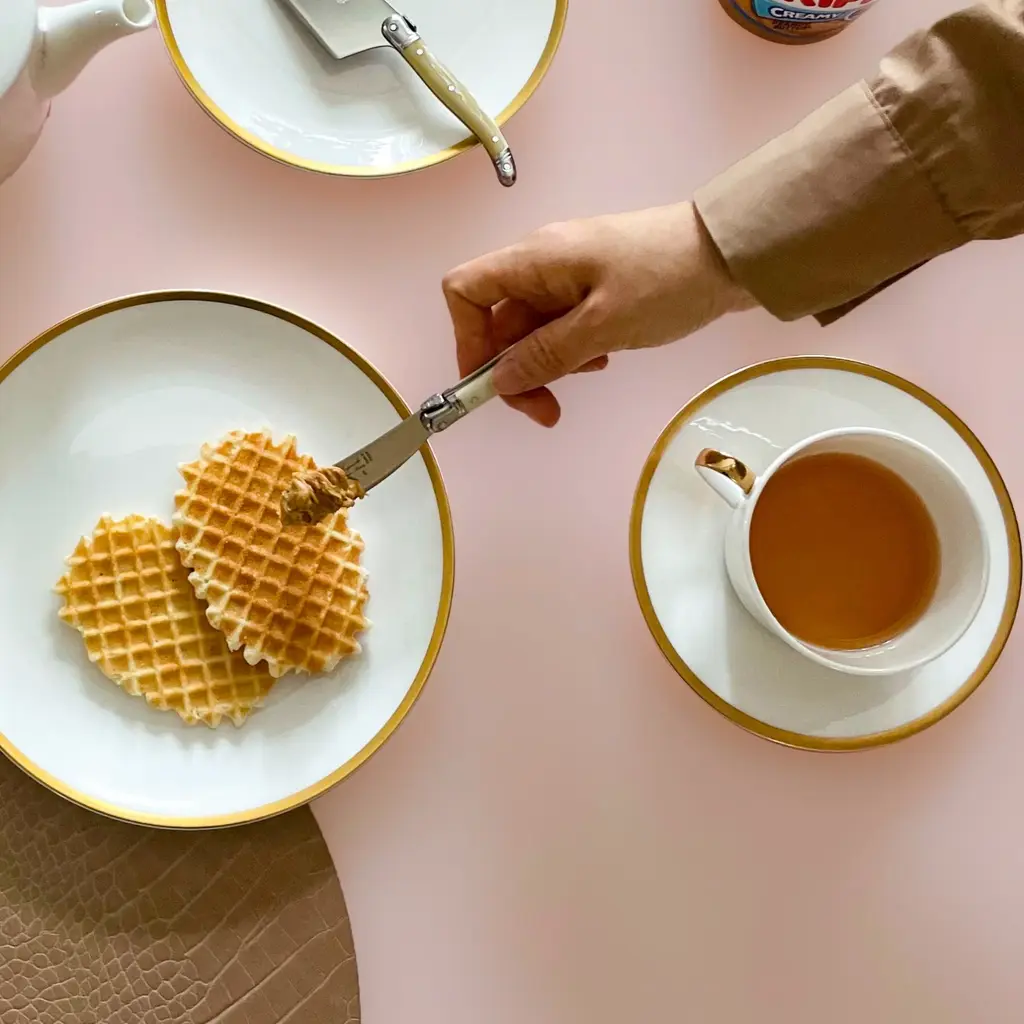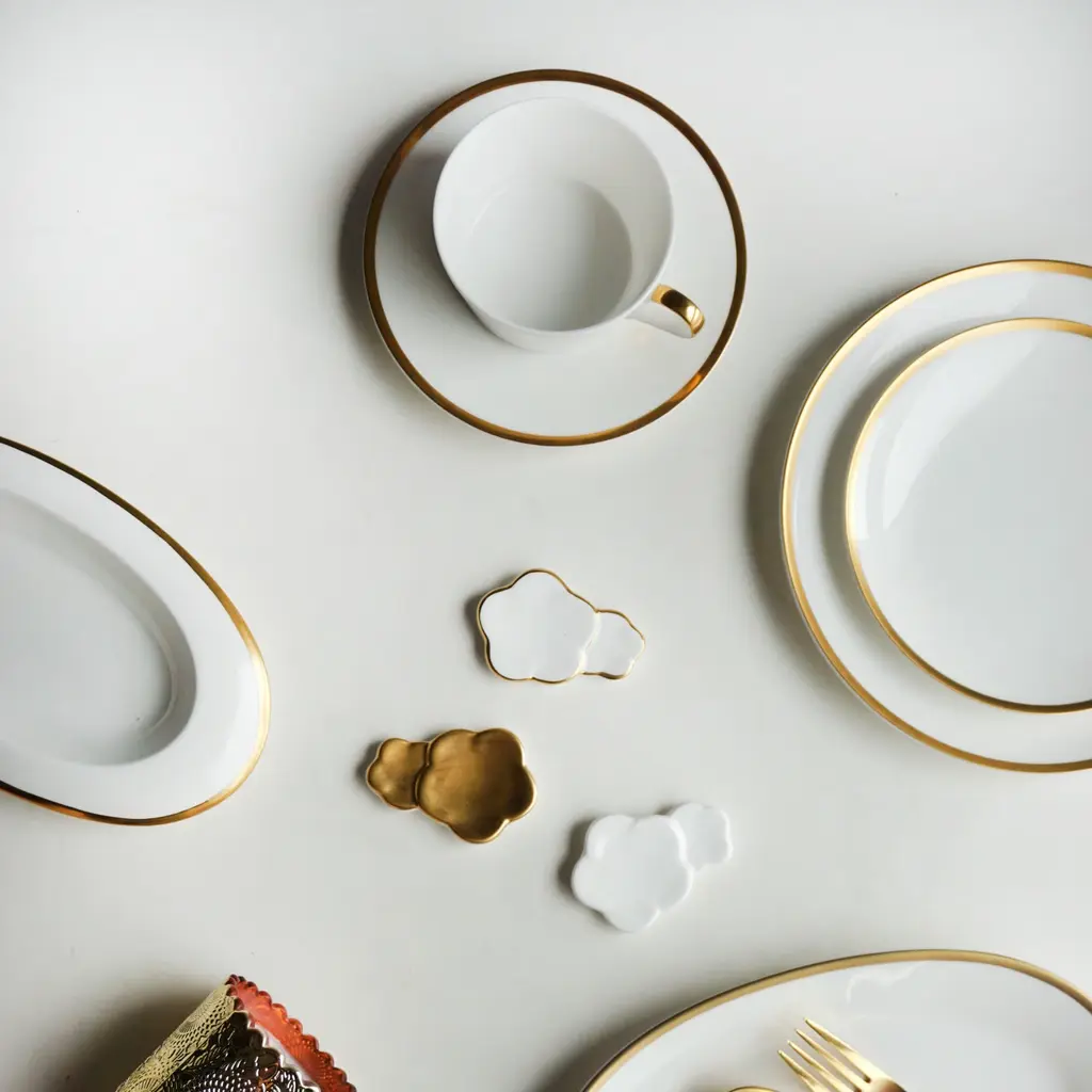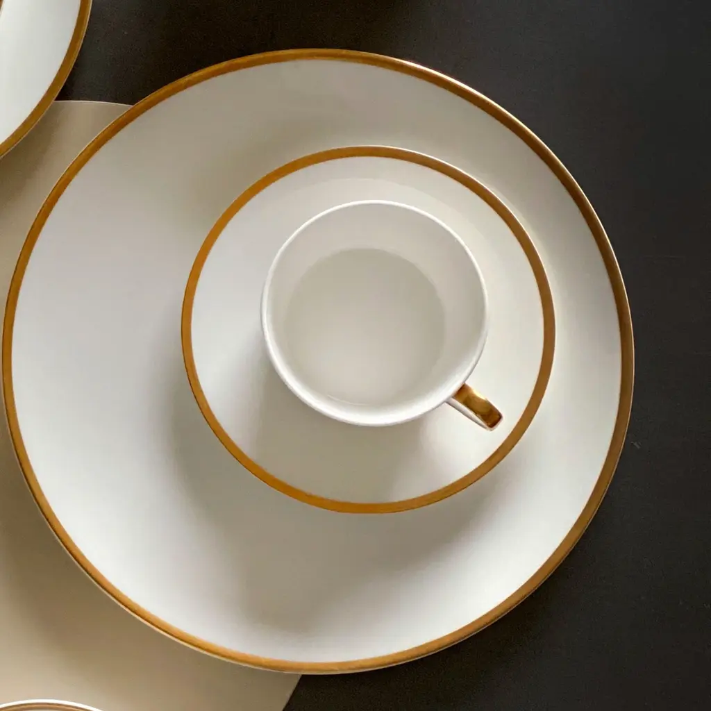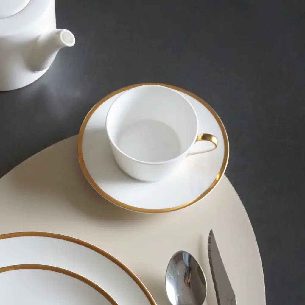A classically inspired collection which combines the majestic look of 24K gold with the purity of white Fine Bone China. The edges in this collection are perfectly hand painted. This collection has been designed with sophistication, minimalism and purity as our inspirations. With contemporary shapes and a complete collection to choose from, we offer elegance and modernity from the Golden Edge Collection by Twig New York.Ideal for tea and coffeeTwo sets per boxFine Bone China with 24K Gold hand-painted rimDue to hand-painted nature of the process, the gold finish may contain variations and brush strokesGolden Edge Collection