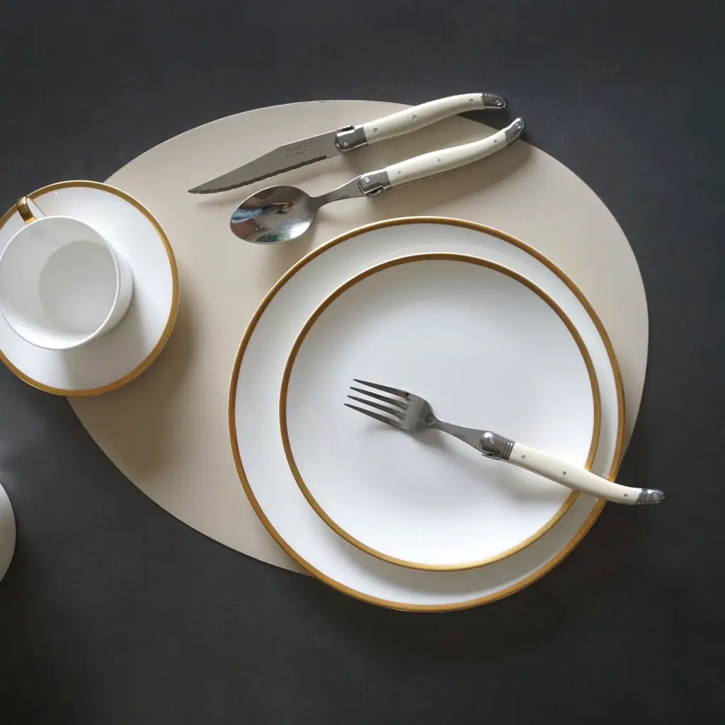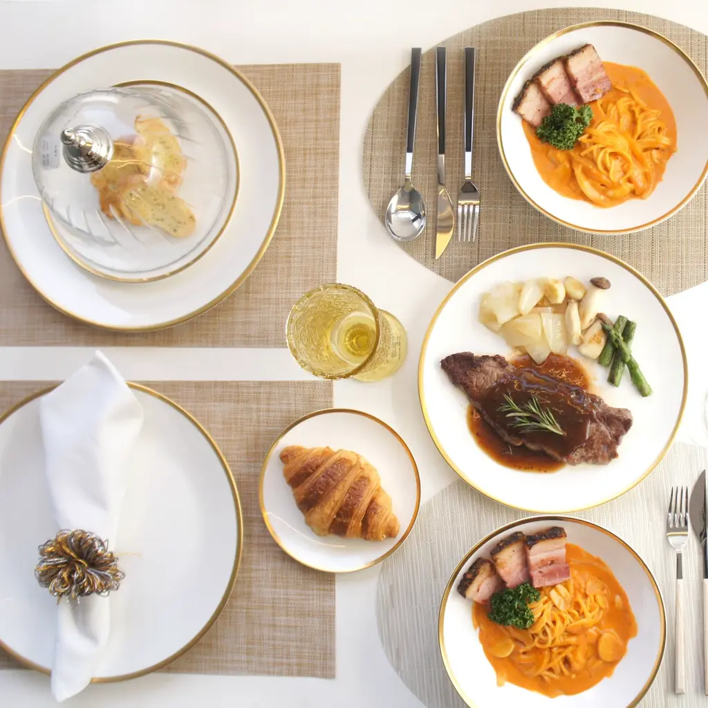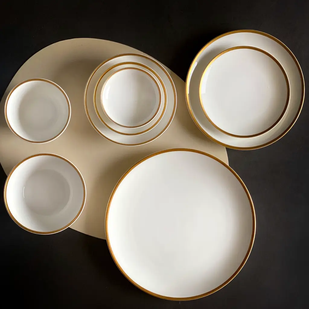A classically inspired collection which combines the majestic look of 24K gold with the purity of white Fine Bone China. The edges in this collection are perfectly hand painted. This collection has been designed with sophistication, minimalism and purity as our inspirations. With contemporary shapes and a complete collection to choose from, we offer elegance and modernity from the Golden Edge Collection by Twig New York.Ideal for salads and dessertsOne set of two plates per boxFine Bone China with 24K Gold hand-painted rimDue to hand-painted nature of the process, the gold finish may contain variations and brush strokesGolden Edge Collection