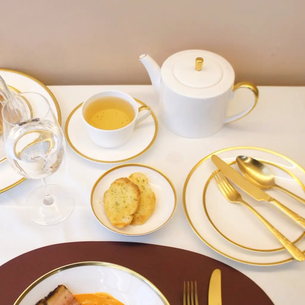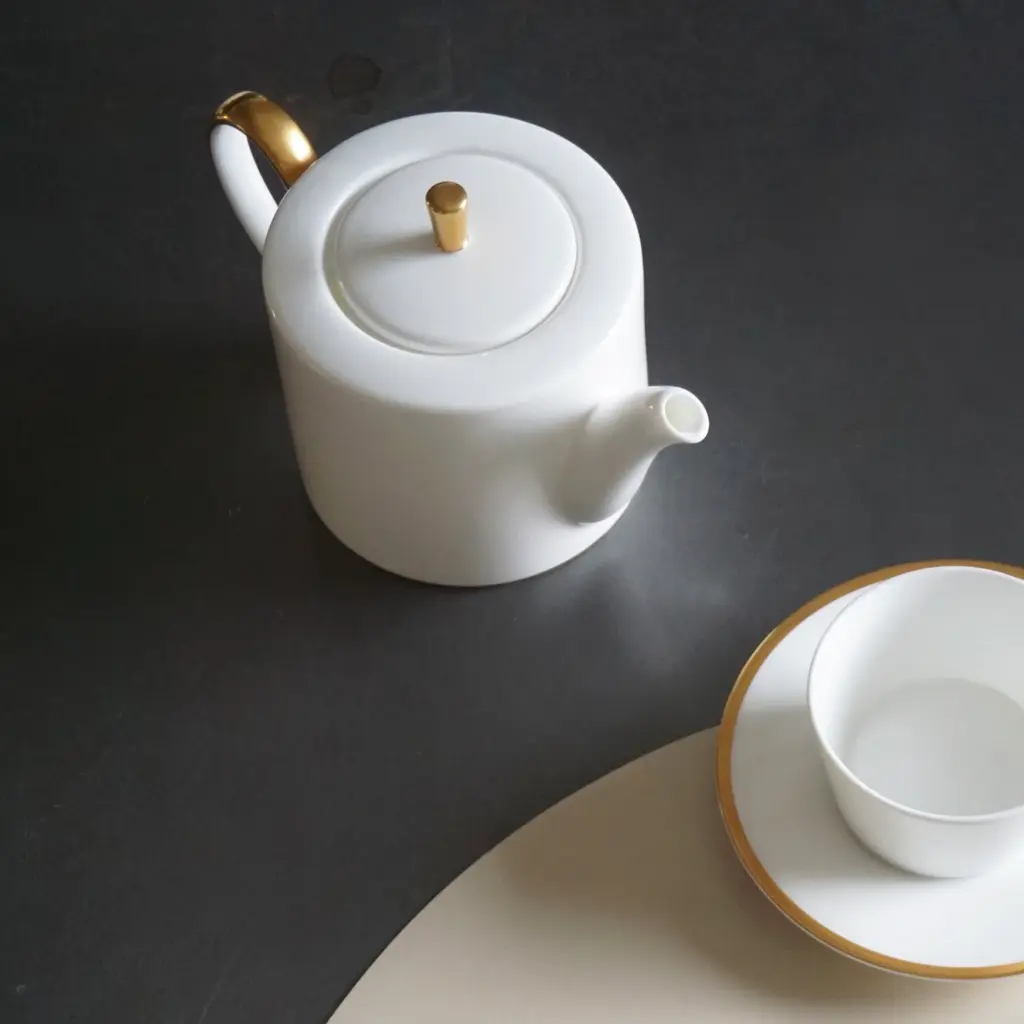 A classically inspired collection which combines the majestic look of 24K gold with the purity of white Fine Bone China. The edges in this collection are perfectly hand painted. This collection has been designed with sophistication, minimalism and purity as our inspirations. With contemporary shapes and a complete collection to choose from, we offer elegance and modernity from the Golden Edge Collection by Twig New York.Ideal for serving teaOne teapot per boxFine Bone China with 24K Gold hand-painted rimDue to hand-painted nature of the process, the gold finish may contain variations and brush strokesGolden Edge Collection